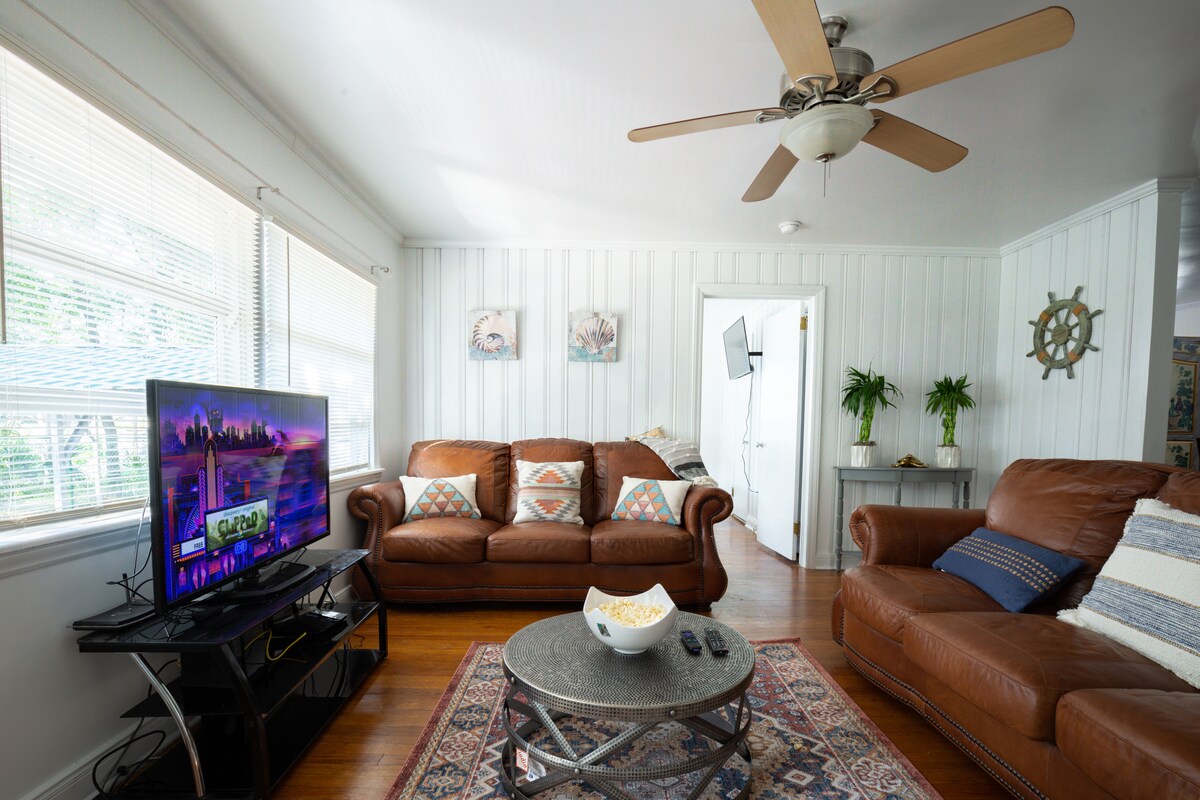 Rauhallinen retriitti, Tiki-poreallas, varaa täydellinen kevätmajoitus! *Seniori- ja sotilasetu. Lisätietoja saat viestillä. *Vain 10 minuuttia valtamerelle ja lentokentälle *Makuuhuone 1: queen-vuode, kylpyhuone, TV, sisäänkäynti patiolta *BR 2: Kaksi queen-vuodetta, sohva, TV, kylpyhuone, parveke *Makuuhuone 3: työtila/työpöytä queen-vuoteella; kylpyhuone, jossa on wc-istuin ja pesuallas *Makuuhuone 4: täysin varustettu, viereinen olohuone, TV, 2 sohvaa * tilava koti, jossa ryhmäsi voi rentoutua ja luoda muistoja! *Koiraystävällinen!