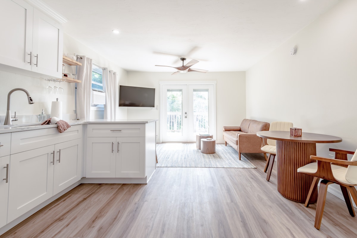 Cozy studio villa located right on the downtown street and only 5 minutes from the beach. Enjoy access to a heated pool, a fully equipped kitchen, beach amenities, and free bikes to explore the area. The perfect spot to relax while staying close to cafés, shops, and local attractions.
