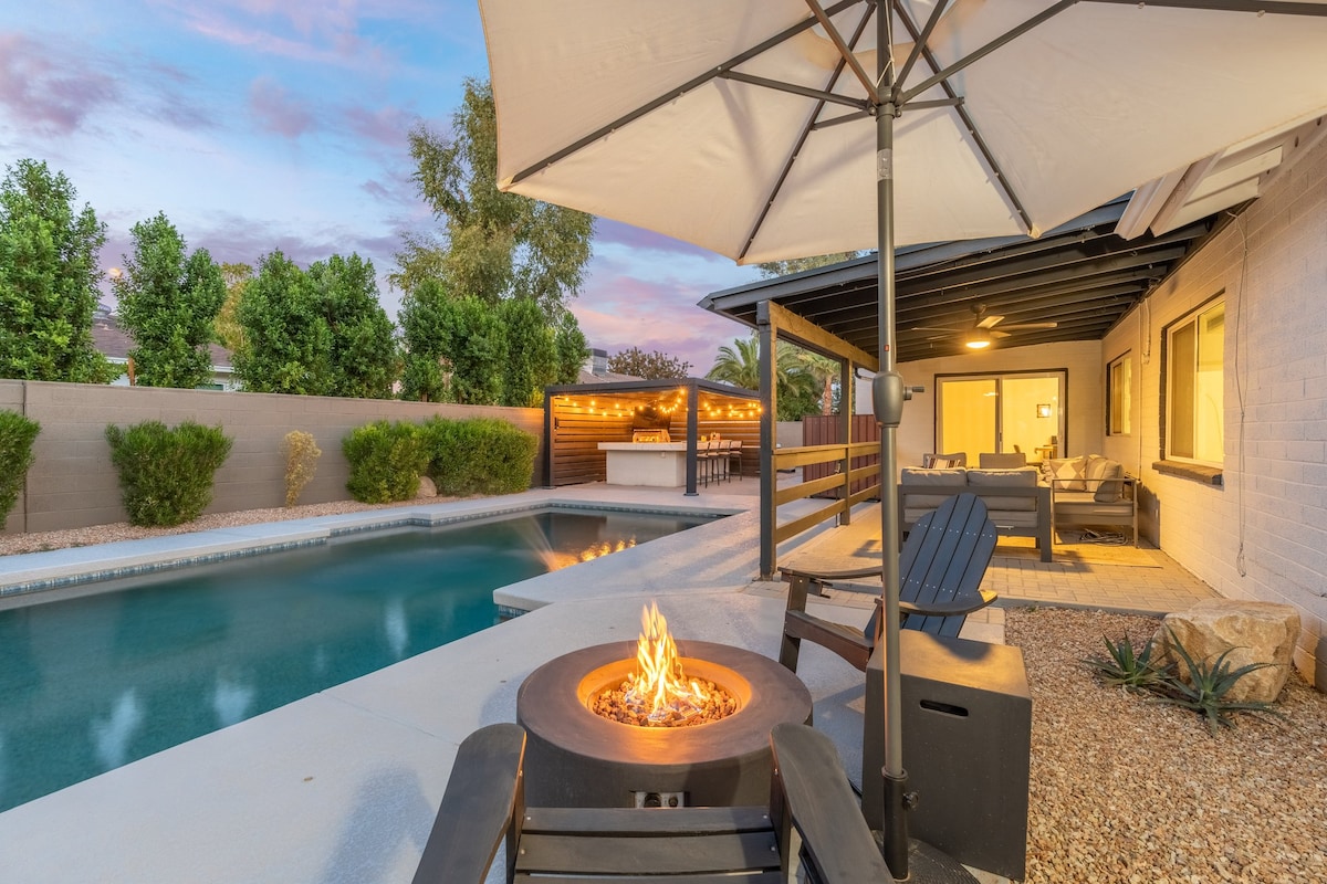 Tyylikkäästi suunniteltu ja moderni niin, että se täyttää vaativimman matkailijan normit. Yksi tämän kohteen kohokohdista on suuri ja yksityinen takapiha. Tila on täydellinen paikka nauttia Arizonan auringonpaisteesta lämmitetyssä* uima-altaassa, pelata saalista tai maissireikää suuressa ruohoalueella, kokoontua nuotiopaikan ympärille nauttimaan lasillisen viiniä ja juttelemaan hyvin tai nauttimaan kupin kahvia katetun terassin alla ja nousemalla aamuauringon kanssa.