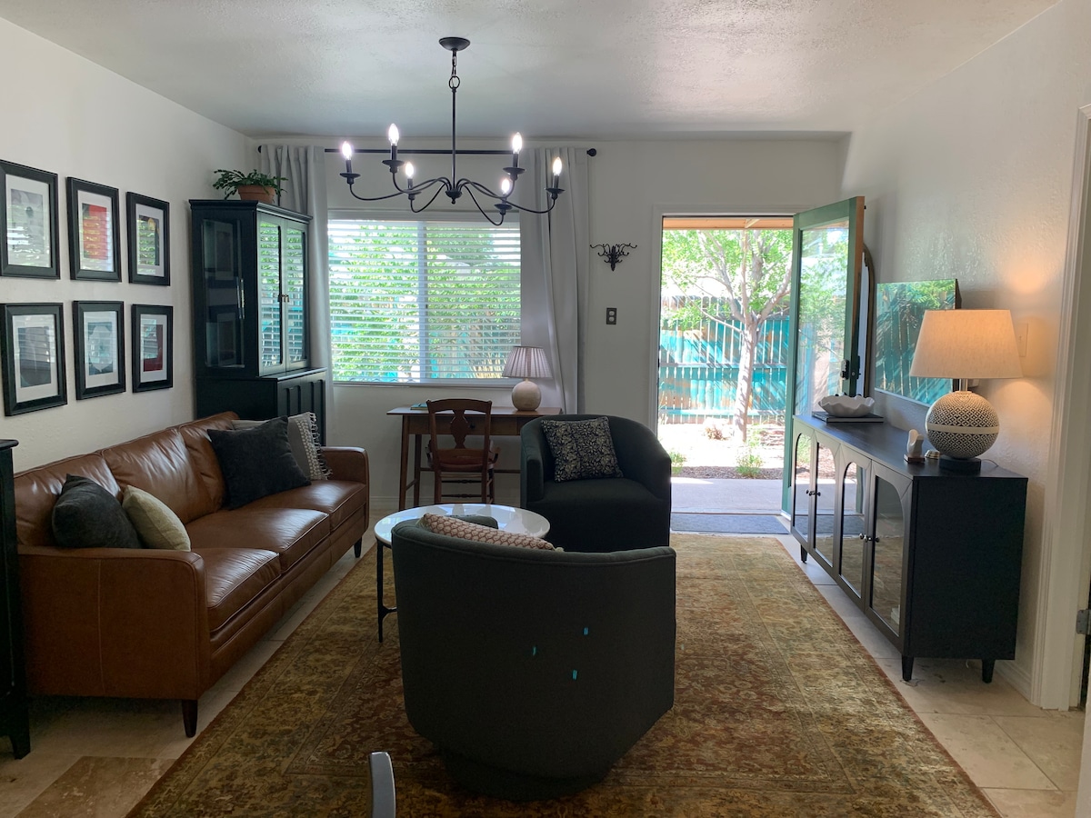 Tässä modernissa rivitaloasunnossa yhdistyvät hienostuneisuus ja toimivuus täydellisesti. Tyylikkäät linjat ja minimalistisessa sisustuksessa – jokainen yksityiskohta on huolellisesti valittu saumattoman kokemuksen luomiseksi. Tämä urbaani keidas tarjoaa rauhallisen pakopaikan kätevästi historiallisen Oldtownin ja DT Albuquerquen välissä. Nauti valikoidusta paikallisesta taiteesta ja eklektisestä sisustuksesta. Ihanteellinen niille, jotka haluavat tutustua vilkkaaseen kaupunkiin tai vetäytyä intiimimpään piilopaikkaan. Meillä on kaikki tarpeellinen!