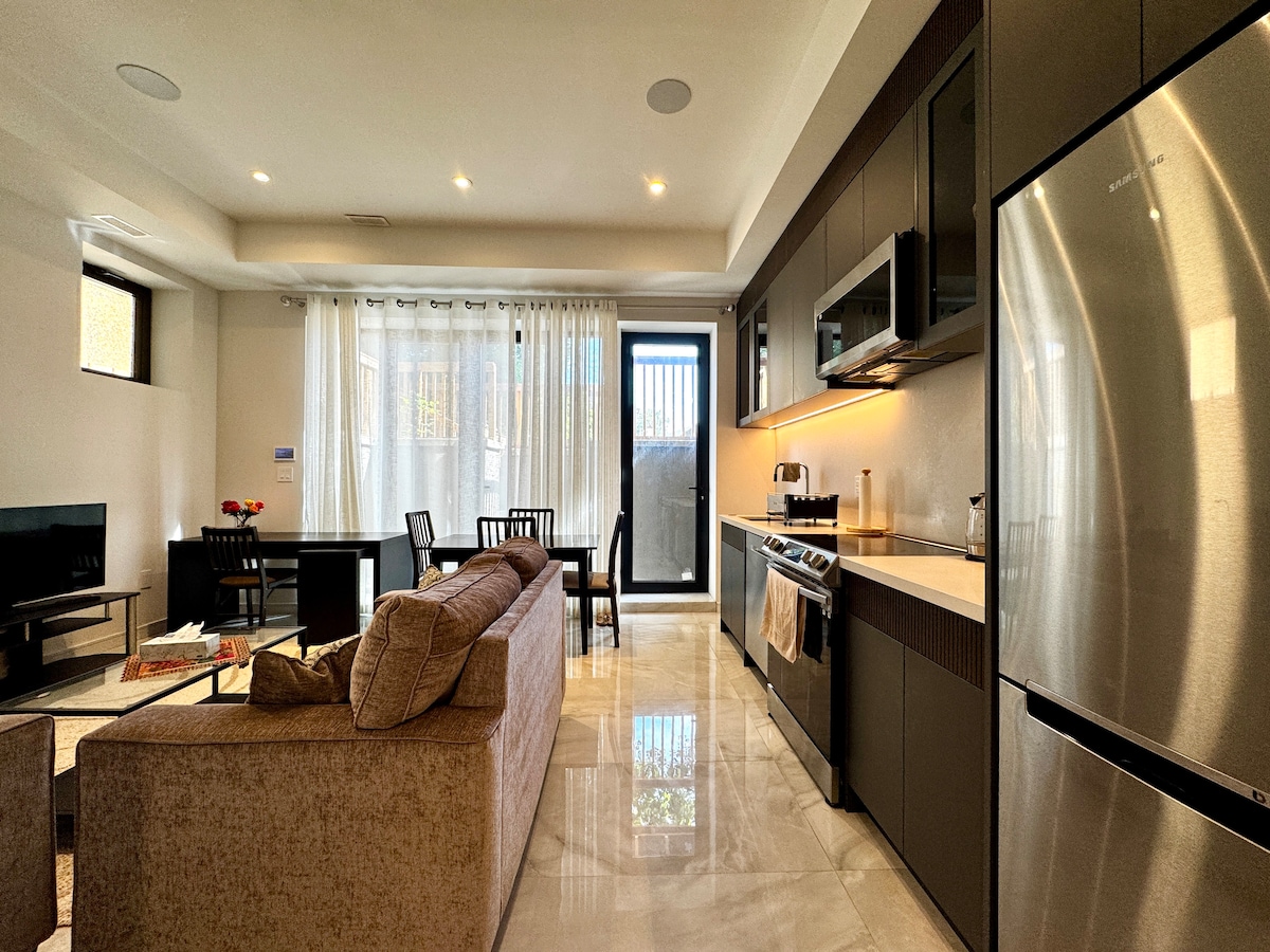 Ei kolmannen osapuolen varauksia! Ei juhlia! Ei vieraita yöksi! SAAPUMINEN YLIMÄÄRÄISEN VIERAAN KANSSA VELOITETAAN KAKSINKERTAISESTI! Tupakoitsijat eivät ole tervetulleita! Designer one-bedroom plus den condo with Alexa smart home and lighting control. Mukavuuksiin kuuluvat queen-vuode, toimisto, täysin varustettu keittiö, Keurig-kahvi, kylpyläsuihku ja kylpyamme. Sisältää 1 Gt/s nopean WiFin ja älytelevision. 5 minuutin ajomatka Yorkdale Malliin, Lawrence West Subwayhin, 20 minuutin ajomatka keskustaan tai lentokentälle.
