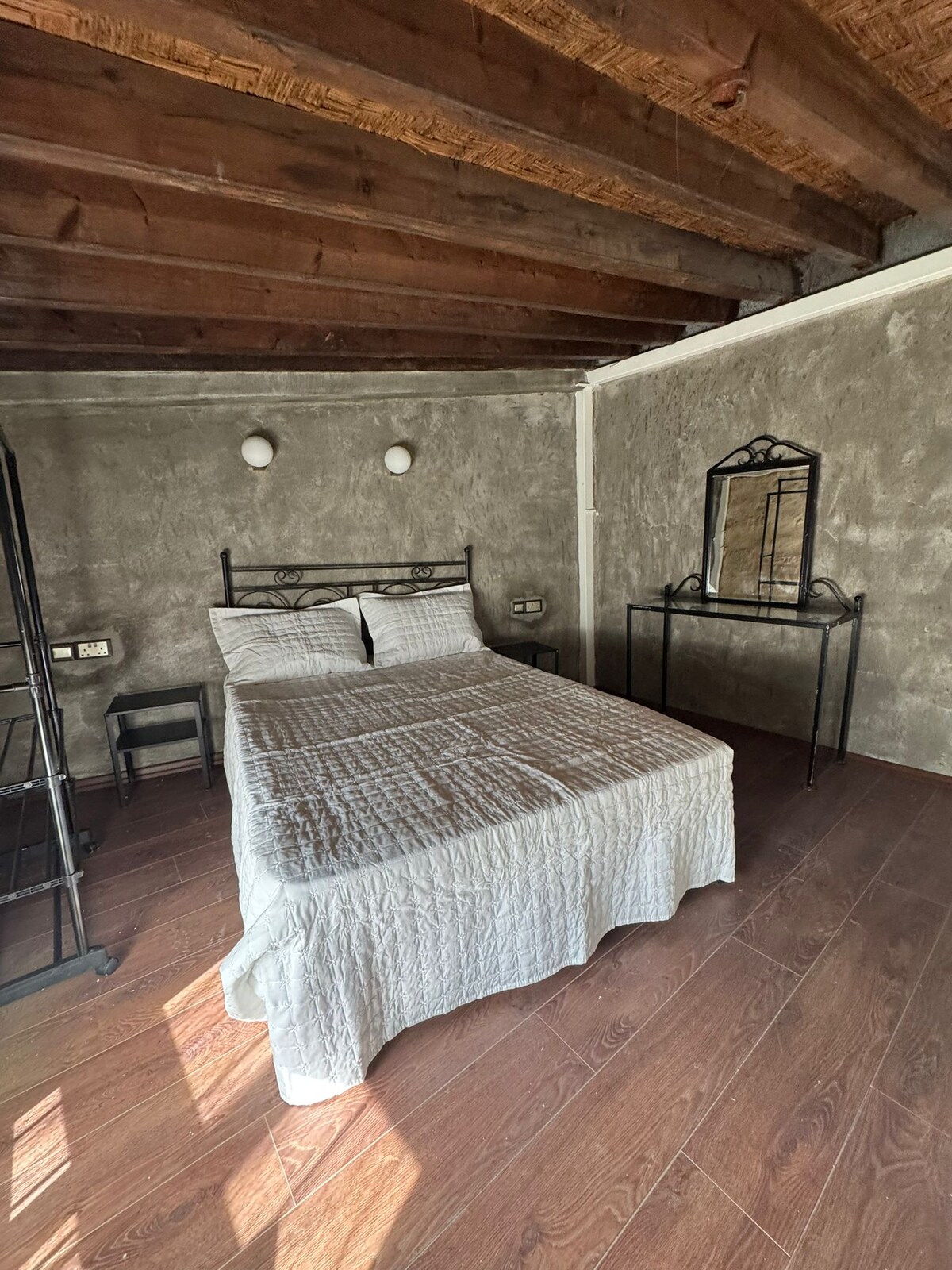 Uusi sviitti, jossa on uusi suihku ylimmässä kerroksessa. Erillinen sisäänkäynti, king-size-vuode lattialla ilman sänkyä, merinäkymä. Suuri parveke. Portaat yläkertaan ovat puuportaita ja hieman terävä suunta, joten ne eivät ole kovin hyviä lapsille, mutta viileitä aikuisille ja pariskunnille. Tämä on ylin kerros, et näe alla olevaa, vaikka vuokraamme myös tämän 3 makuuhuoneen kattohuoneiston. Soita lisätietoja varten.