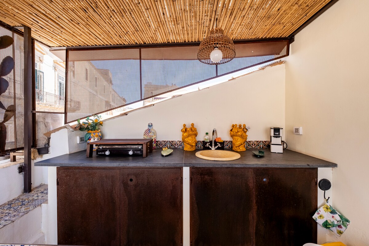 Sijaitsee ikivanhassa, komeassa kodissa, sisäisten portaiden kautta pääset huoneeseen, jossa on viereinen terassi. Huoneessa on kaikki mukavuudet ja se on äskettäin kunnostettu. Huone on muutaman metrin päässä Noton katedraalista, Palazzo Duceziosta ja fantastisesta Palazzo Nicolacista. Se on noin 8 km: n päässä merestä, 10 km: n päässä Vendicarin keitaasta ja 30 km: n päässä Syracusen kaupungista. Helppo pääsy Catanian Fontanarossa lentokentältä (noin 50 minuuttia autolla).