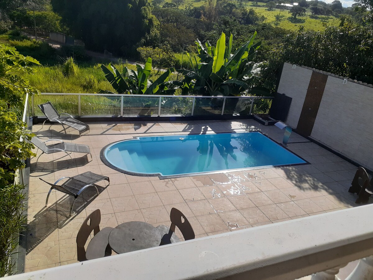 Hyvin sijaitseva tila maaseudulla 15 minuutin päässä Itaúnan keskustasta! Suuri, ilmava ja erittäin viihtyisä sviittihuone! Tilaa kotitoimistolle!Maalaistyylinen parveke, jossa on täydellinen gourmet-tila, täydellinen hyviin hetkiin perheen kanssa! Kaunis uima-allas, jossa on aurinkolämmitys, maksimilämpötila 30 astetta, rikkoo jään (pilvisinä ja sadepäivinä se ei lämmitä!!!) ja viehättävä puuterassi! Nurmikenttä, joka tarjoaa miellyttävää ulkoilua!