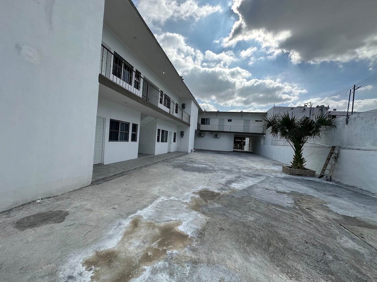 4 vuoteen erittäin tilava, keskeinen ja erittäin turvallinen huoneisto, lähellähellä Yhdysvaltain konsulaattia ja kansainvälisiä siltoja, nopea pääsy Colosio-bulevardille, eikä sinun tarvitse mennä koko kaupunkiin, jos tulet Meksikon sisäosista tai Texasista, Ostoskeskukset, ravintolat, kauneushoitolat aivan lähellä! Jne. Perhealue urheilukeskuksen edessä! 2 makuuhuonetta, kaksi kylpyhuonetta 1 king-vuode + 1 queen-vuode +2 yhden hengen vuodetta + vuodesohva Ilmainen pesula *Pesu ja kuivaus on sallittu klo 20.00 jälkeen Kuumavesisäiliö / Minisplits / Lämmitys