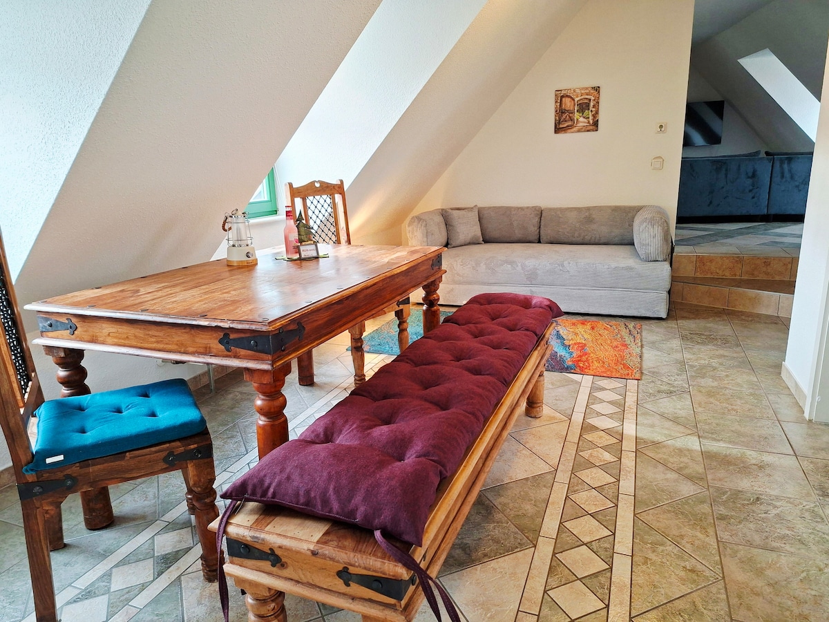 Vierasmajoitus sijaitsee talomme täysin uudistetussa ullakossa. Se sisältää oleskelutilan, jossa on keittiö, 2 makuuhuonetta ja suuri kylpyhuone. Lähin supermarket on alle 1 km päässä ja leipomo vain 2 minuutin kävelymatkan päässä. Tarvittaessa leipäpalvelu on mahdollista lauantaisin. Riesa sijaitsee suunnilleen puolivälissä Leipzigin ja Dresdenin kaupunkien välillä, aivan kauniin Elben varrella. Elben pyöräreitti on noin 3 km päässä.
