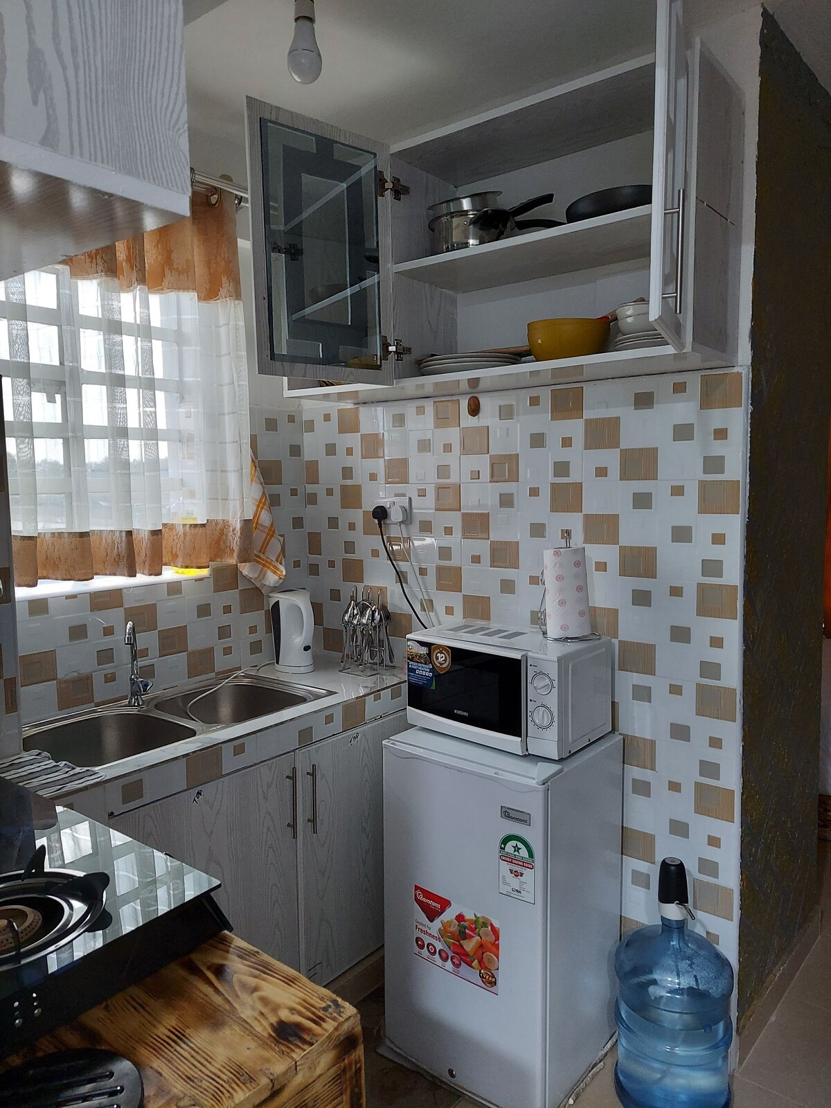 Our charming one-bedroom apartment is perfectly situated for exploring the great outdoors and enjoying local amenities. Relax in our comfortable space, equipped with: -Reliable WiFi* to stay connected -Fully-equipped kitchen* to whip up your favorite meals. Our apartment is conveniently located near public transport, making it easy to get around Naivasha and beyond. You will appreciate our proximity to: *Hell's Gate National Park (just 40 minutes away) *Lake Naivasha (only 40 minutes away)