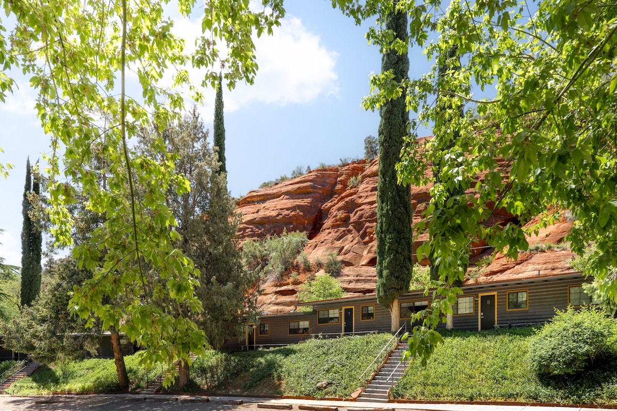Olemme historiallinen motelli, joka on rakennettu vuonna 1961. Sijaitsee keskellä Uptownia (joka on Sedonan kielenkäytössä keskustaa). Suora näkymä punaisiin kallioihin ja Cathedral Rockiin ikkunasta, useita hyviä ravintoloita ja baareja muutaman sadan metrin päässä (The Cowboy Club, Elote jne.), ilmainen pysäköinti edessä, pehmeä tunnelma, puhtaat huoneet, joita koristavat paikalliset taiteet, kohtuulliset hinnat. Helppo, mukava ja seurallinen. Täydellinen keskeisellä paikalla sijaitseva paikka!