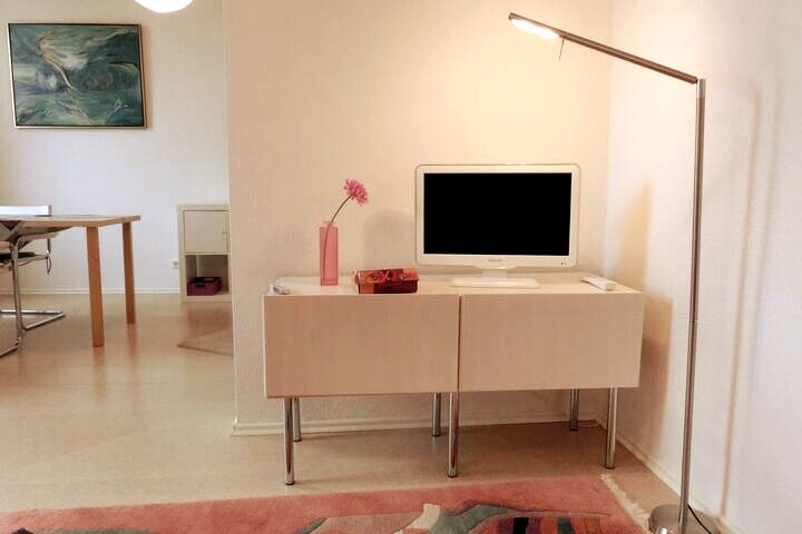 Kirkas ja ystävällinen huoneisto sijaitsee rauhallisella paikalla kauniilla Rüttenscheider Mädchenviertelillä. Essenin messut ja Folkwang-museo ovat kävelymatkan päässä 5 minuutissa. Lähistöllä "Rü" houkuttelee monipuolisella ravintoloiden, baarien ja klubien tarjonnallaan - jokaiselle löytyy jotain. Huolimatta myöhäisillan viikonloppuliikkeestä "Rü":ssä, studio on erittäin hiljainen ja tuskin uskoo, että asuu tapahtumien keskellä.