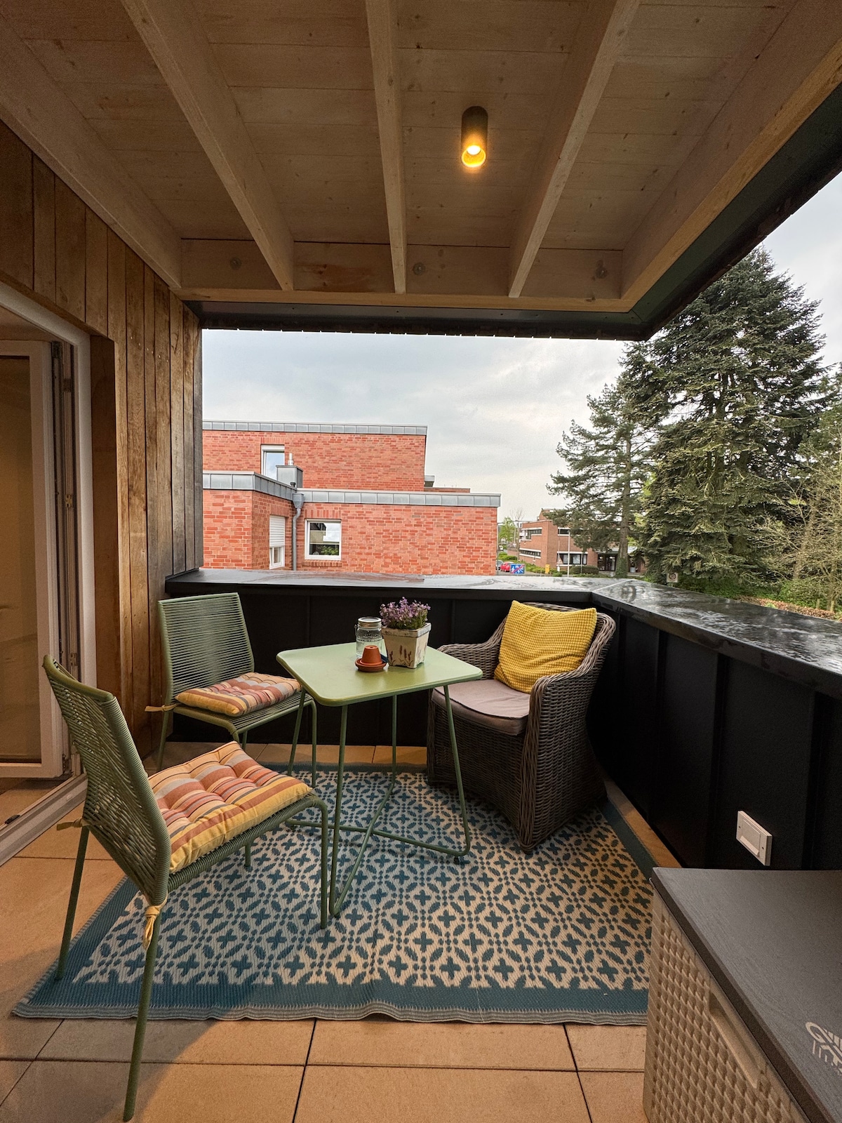 Huoneisto sijaitsee omakotitalossa (1. kerros) rauhallisella asuinalueella/Schotthockissa, noin 3,5 km:n päässä kaupungin keskustasta. Asunnossa on makuuhuone, jossa on parivuode, olohuone, jossa on vuodesohva ja parveke, keittiö-olohuone, kylpyhuone, jossa on suihkuamme, ja eteinen. Pysäköintipaikka talon ulkopuolella. Rheine sijaitsee aivan Emsin rannalla, mahdollisuuksia pyörä- ja venematkoihin ja patikoimaan, kaunis uusi vesipuisto (Aqua Reni)