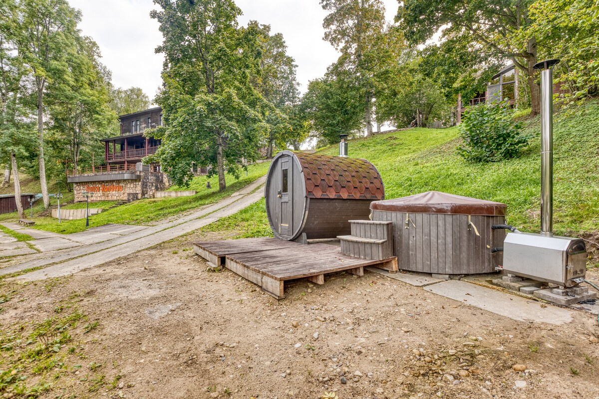 Rauhallinen perämökki saunalla ja porealtaalla Riian lähellä