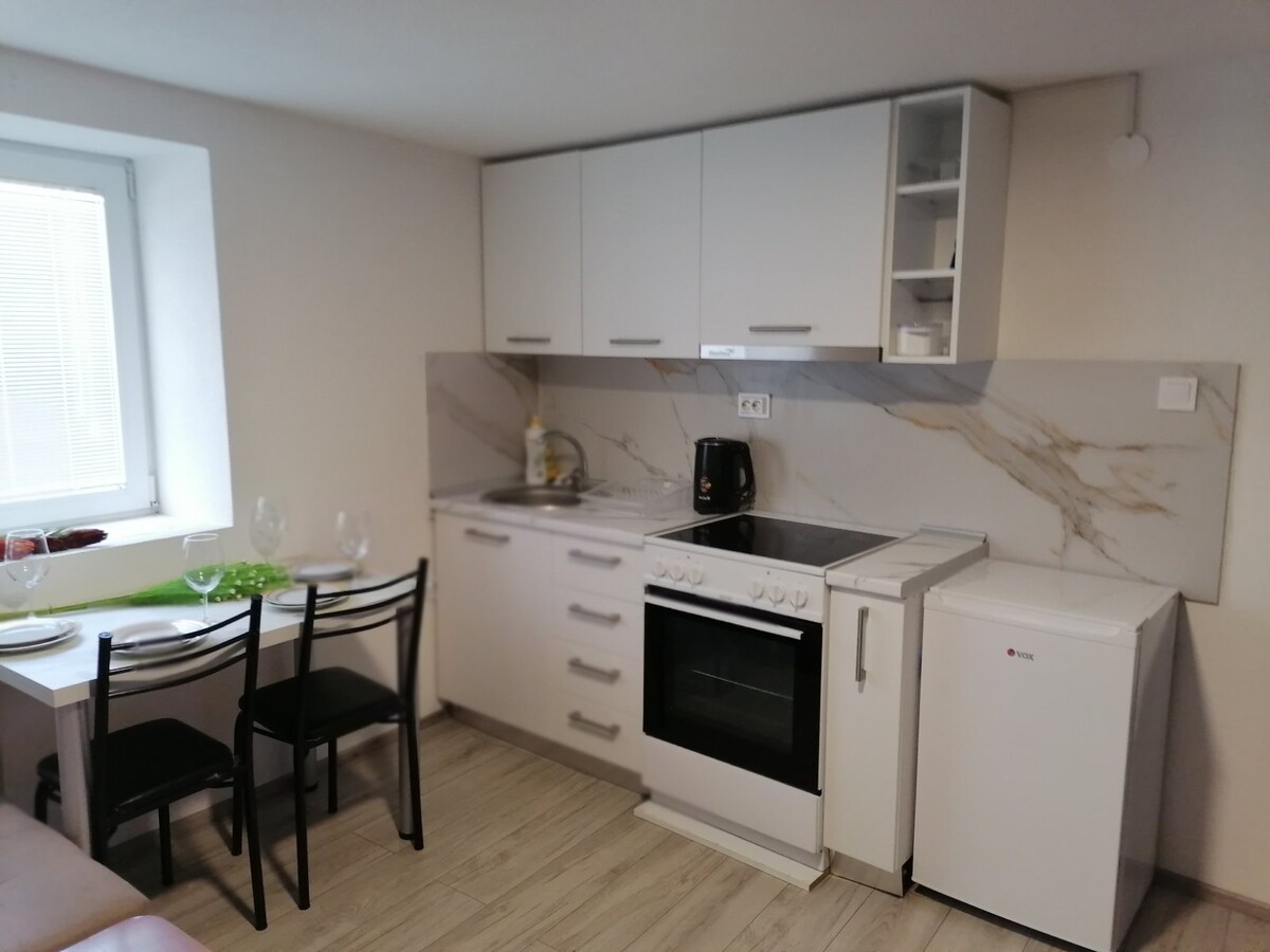 Moderni, täysin varusteltu huoneisto Ohridin keskustassa. Vain muutaman askeleen päässä järvestä, vanhastakaupungista, kaupoista ja ravintoloista. Mukava makuuhuone, avoin olohuone, jossa on vuodesohva, äly-tv, nopea WiFi, ilmastointi ja täysin varustettu keittiö, jossa on kaikki laitteet. Ihanteellinen pariskunnille tai pienille perheille. Tyylikäs, puhdas ja mukava – täydellinen rentouttavaan majoittumiseen kaupungin sydämessä.