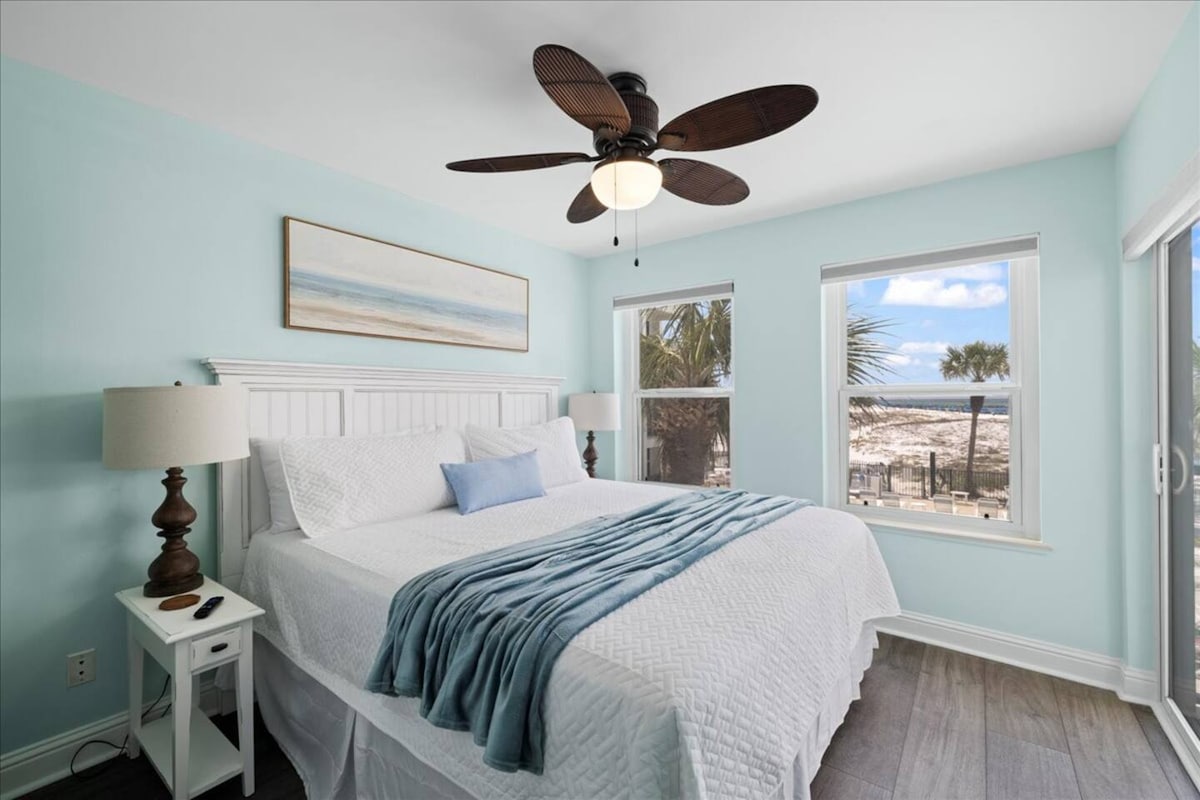 Sijaitsee suoraan rannalla, tämä tilava huoneisto on henkeäsalpaava esteetön Persianlahden näkymät, päivitetyt lattiat ja laitteet ja nukkuu kuusi. Koristeltu rauhoittavilla design-väreillä rannikon tuntumalla, yksikössä on makuuhuone, jossa on mukava king-kokoinen vuode, taulu-tv ja oma kylpyhuone; kaksi kerrossänkyä eteisalkoholissa, toinen kylpyhuone suihkulla ja avoin konsepti täyskokoinen keittiö, jossa on kaikki uudet täysikokoiset ruostumattomasta teräksestä valmistetut laitteet, ruokailutila ja olohuone, jossa on vuodesohva..