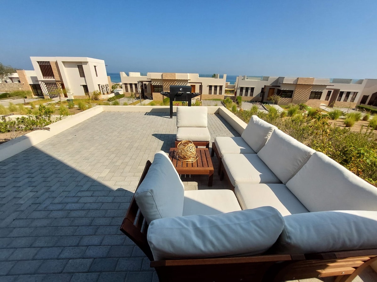 Ainutlaatuinen kaksikerroksinen rantatalo Sifahissa, josta on AINOA täysin esteetön merinäköala koko projektissa. Pohjakerroksessa on valoisa olohuone, täysin varusteltu keittiö, kylpyhuone ja tilava ulkoistuma-alue, josta on suora näkymä merelle. Yläkerroksessa on viihtyisä makuuhuone, kylpyhuone ja parveke, josta on täydelliset auringonlaskunäkymät. Täydellinen yksityisyys, leveä terassi, ranta ja uima-allas, modernit huonekalut, ilmastointi ja nopea wifiyhteys tekevät tästä paikasta ihanteellisen rauhallisen merenrantaloman.