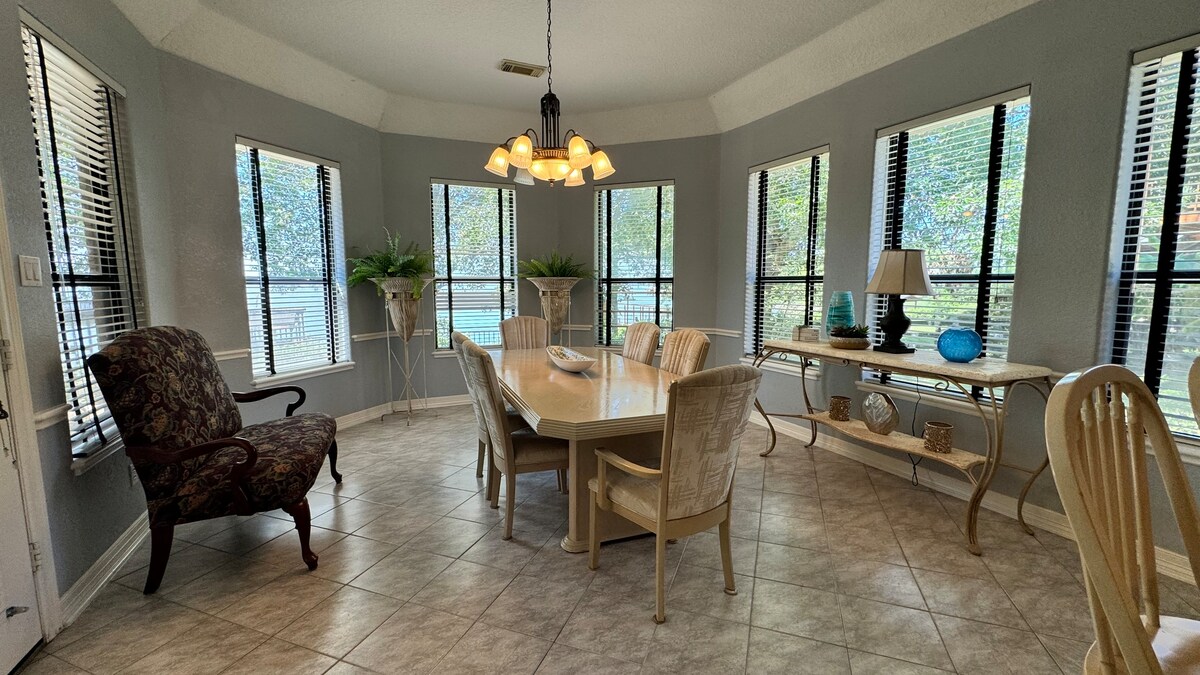 Tämä lemmikkiystävällinen BearKat Bungalow sijaitsee muutaman askeleen päässä Sam Houston Statesta, ja se on mukava paikka antiikkiesineiden ostamiseen, ruokailuun, puistoihin ja museoihin. Muutaman minuutin päässä on Sam Houstonin kansallispuisto, jossa voi vaeltaa, viinitiloja ja Blue Lagoon sukeltajille. Rentoudu nuotiopaikan äärellä ulkoistuinalueella! College Station ja The Woodlands ovat 35–45 minuutin päässä tapahtumia varten. Täydellinen spontaaniin BearKat-lomaan – ota koirasi mukaan ja nauti Huntsvillen viehätyksestä!