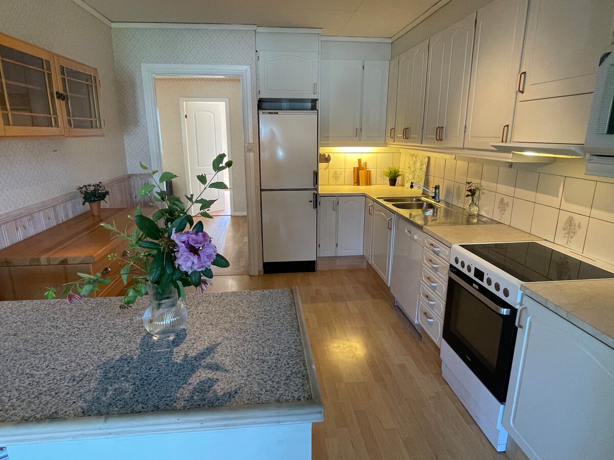 Talo, jossa on suuri puutarha, on omenapuita ja marjapensaita, mutta silti hyvä paikka leikkiä. läheisyys muun muassa suolalähteen uintialueelle, Torrebyn golfkentälle ja kanoottikeskukselle. Vaellusreitit ja kalliokiipeily. Autolla Lysekiliin, Hunnebostrandiin, vuoristoon tai muihin rannikon helmiin menee noin 30 minuuttia. Talossa on tarvitsemasi välttämättömyystarvikkeet. Sekä kolme pysäköintipaikkaa. Pussilakanoita ja tyynyjä on saatavilla. Vuodevaatteista ja kylpypyyhkeistä veloitetaan 150 kruunun maksu/setti, jos niitä halutaan. Siivous ei sisälly hintaan. Jätä samaan kuntoon.
