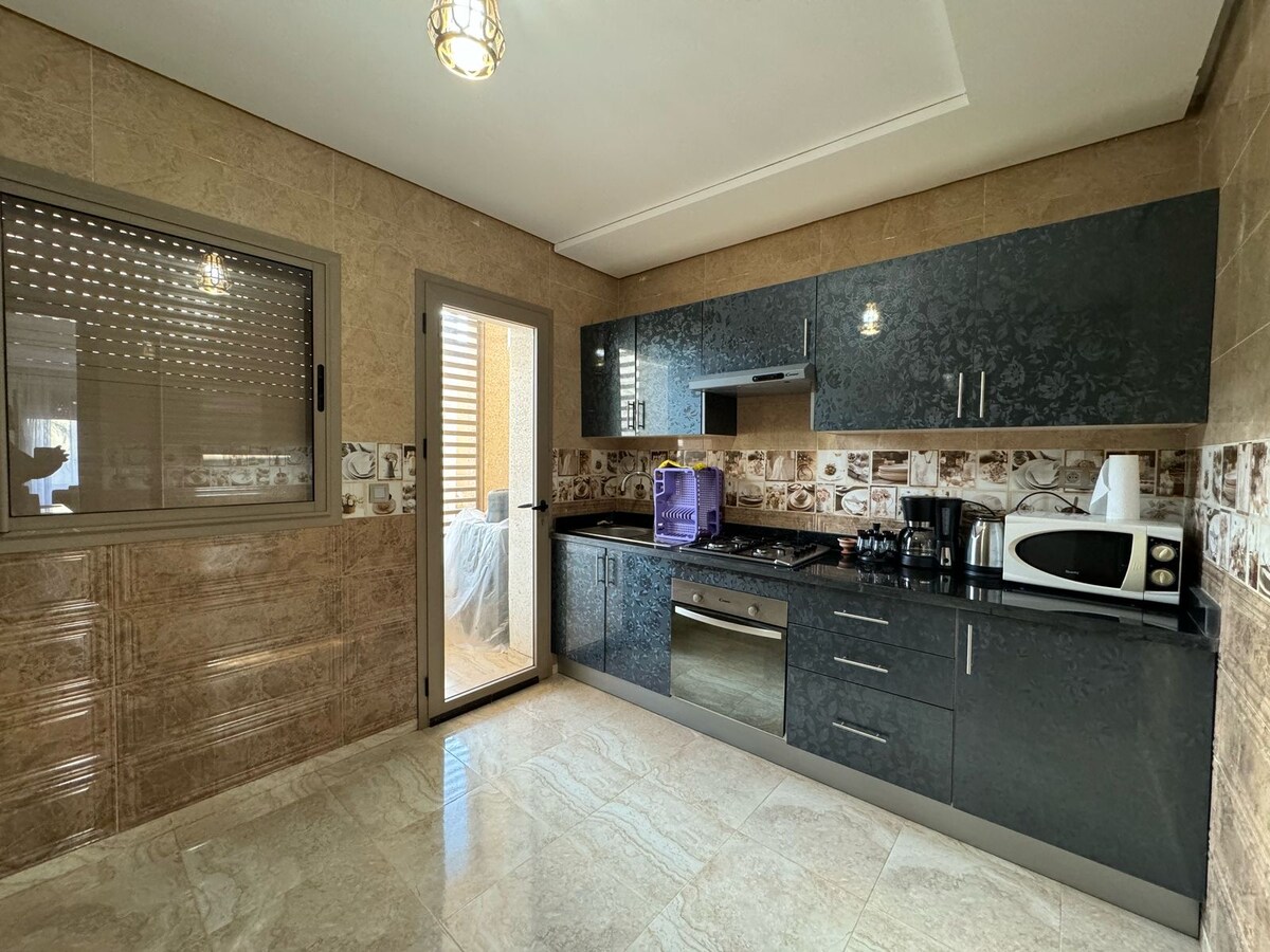 Appartement à Louer à Saïdia dans la Résidence Tamaris Caractéristiques de l'Appartement - Chambres : Il comprend plusieurs chambres lumineuses, chacune équipée de lits confortables. - Équipements : La cuisine est entièrement équipée avec des appareils modernes, tandis que le salon offre un espace convivial pour se détendre. - Climatisation : l'appartement est doté de la climatisation.
