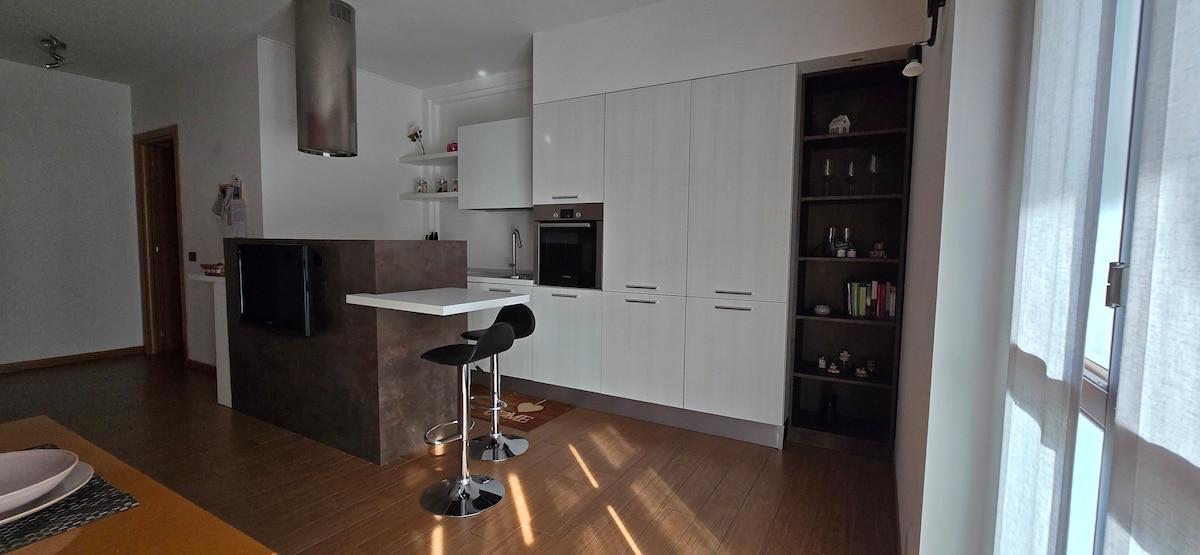 3 huoneen talo, jossa on pesukone, astianpesukone, on kävelymatkan päässä liikenteestä, ravintoloista, 5 minuutin ajomatkan päässä motorawy A4: stä, 15 minuutin päässä Orion lentokentältä, 40 minuutin päässä Milanosta, 15 minuutin päässä Minitalia Leolandia -puistosta. Lähellä hiihtoalueita (Foppolo, Valtorta, Montecampione) - noin 1 tunti autolla