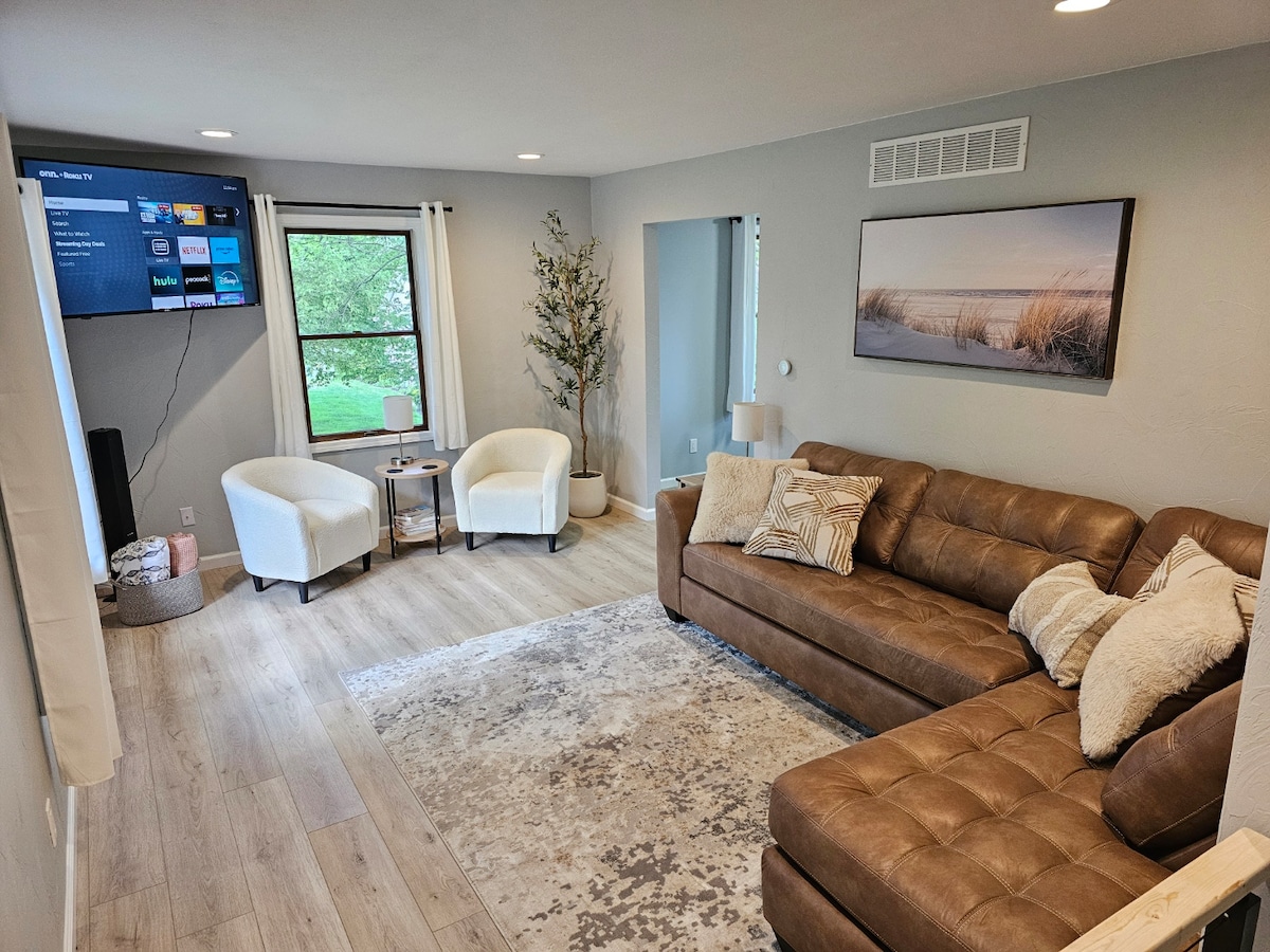 Tervetuloa upeaan ja moderniin kotiimme Hollandin, Michiganin sydämessä, kävelymatkan päässä keskustasta ja Tulip Time Parade -paraatista. Tämä kaunis ja mukava tila on täydellinen enintään kuudelle vieraalle, ja se on ihanteellinen paikka, jota voit kutsua kodiksi Hollannin-vierailusi aikana. Nauti majoittumisestasi tässä 3 makuuhuoneen ja 1 kylpyhuoneen perheystävällisessä kodissa, joka sijaitsee ihanteellisesti lähellä kaikkia Hollandin tarjoamia mukavuuksia. Sisäänkirjautuminen: 15.00 Uloskirjautuminen: 10.00