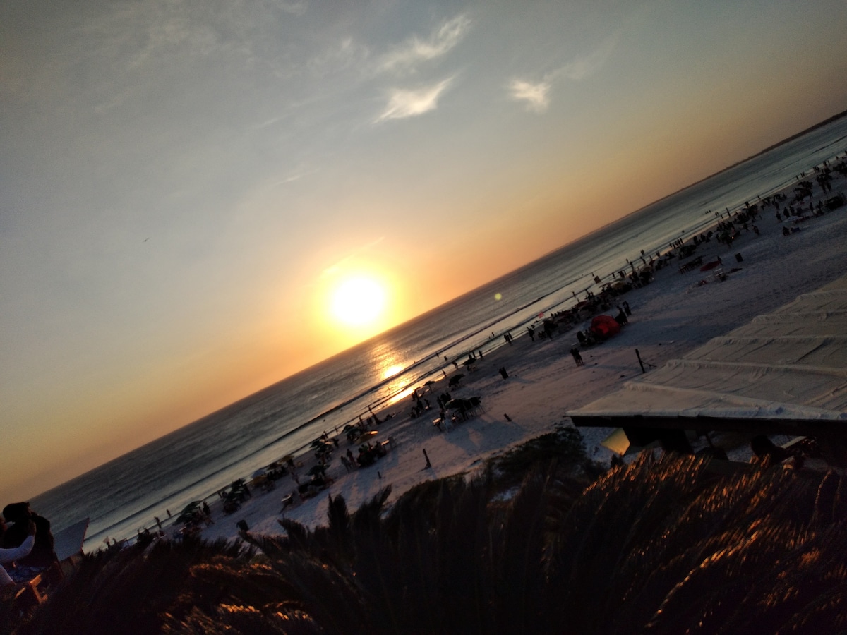 Yksityinen loft-hualla, jossa on uima-allas, 1 minuutin päässä rannalta, sisältäen aamiaisen ja yksinoikeudella pääsy Pontal-rannalle: - Uima-allas (jaettu) - Ilmastointi - Yksityinen keittiö, jossa on induktioliesi, ilmakeitin, minibaari, mikroaaltouuni, kahvinkeitin ja ruokailuvälineet - Pysäköinti - Yksityinen kylpyhuone - Grillausalue terassilla merinäköalalla (jaettu) - Älytelevisio - Nopea wifi - Elektroninen portti - Silitysrauta - Hiustenkuivaaja - 800 m buser-pisteestä – 3 km keskustasta