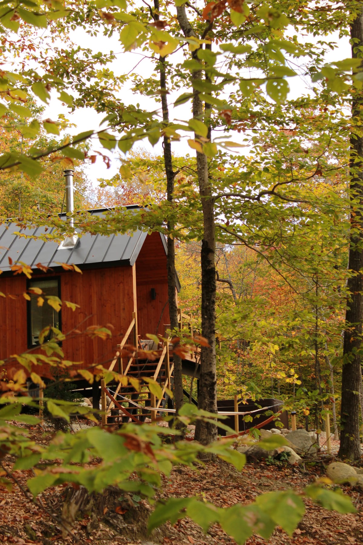 Pakene arkea Camp Swedeniin, ympäristöystävälliseen rantakohteeseen White Mountainsin juurella. Melo yksityisen lammen poikki, lähde patikoimaan läheisille vuorille tai hyppää uuteen panoraamanäkymällä varustettuun ulkosäiliösaunaan ja anna huoliesi haihtua. Nauti ainutlaatuisesta ja virkistävästä elämyksestä, joka yhdistää sinut luontoon mukavuuksista tinkimättä. Tämä lomakohde tarjoaa ympärivuotista nautintoa luonnonystäville ja ulkoilun harrastajille. Koe Mainen kauneus tänään