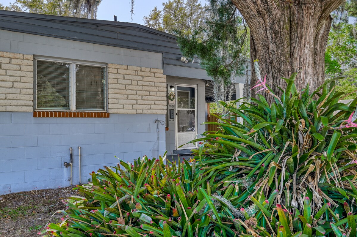 Puhdistamme nyt enemmän kuin koskaan aikaisemmin. Ovenkahvat, hanan kahvat ja valokatkaisimet desinfioidaan perusteellisesti vieraiden välillä. Terveys on etusijalla! 1 makuuhuone 1 kylpy huoneisto, lähellä UF & thd lentokenttä, keittiö ja kylpyamme. Erittäin mukava kuningattaren kokoinen sänky. Kaunis olohuone ja aamiaisbaari, jossa on hyvä valaistus kauttaaltaan. Neljännesmailin luontopolku läpi 5 eekkerin magnolioiden, tammien ja muinaisten mäntyjen aivan etuoven ulkopuolella. Nauti aidosta Floridasta!