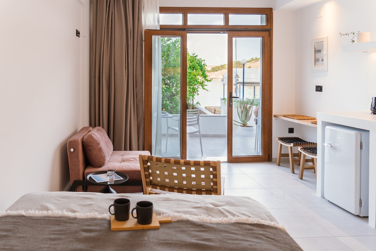 Rentoudu iconin rauhallisessa, tyylikkäässä merenrantahuoneistossa. Se on suunniteltu täyttämään pariskunnan tai kolmen hengen perheen tarpeet tyylikkäässä ja toimivassa tilassa. Olemme suunnitelleet jokaisen yksityiskohdan rakkaudella, jotta vierailusi Pantoukiosin viehättävässä satamassa Chiossa olisi unohtumaton! Se on merenranta-asunto, jossa on oma terassi ja rajoittamaton näkymä. On myös mahdollista saapua ja lähteä itsenäisesti. Olemme iloisia voidessamme toivottaa teidät tervetulleiksi!