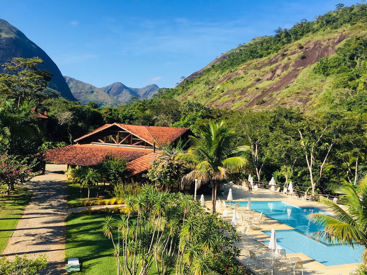 Cond Vilarejo das Cachoeiras Secretary Petrópolis RJ. Penthouse green houses with WI-FI, lots of sun, beautiful view. Guests will enjoy top-notch infrastructure. Condominium with 2 swimming pools, cold and heated, river beach, waterfall, shower with deck, beautiful views of the valley. Children's playground, sauna and steam room, restaurant, bar, football field, volleyball court, tennis court, skiing on the lawn. 24-hour concierge.