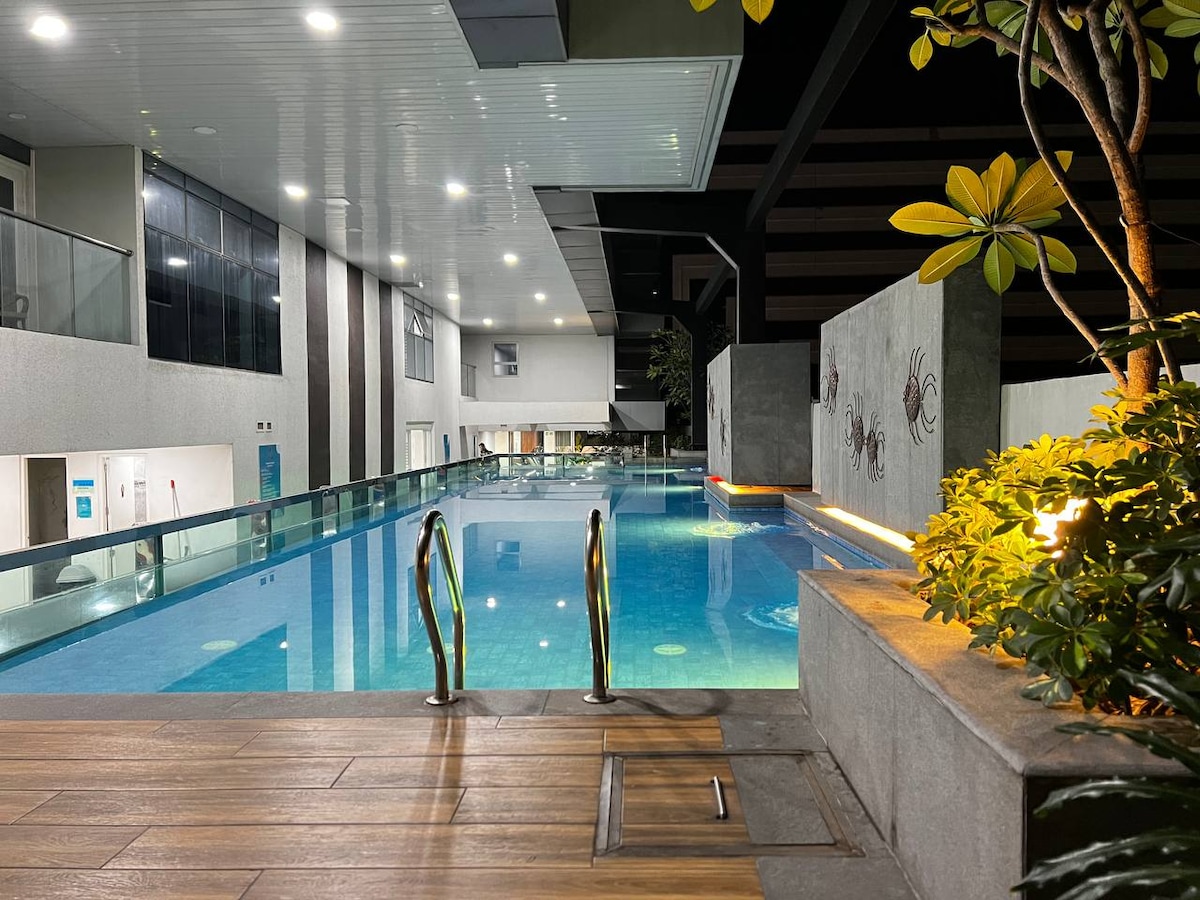 Ylellinen oleskelu Paranaquessa lähellä PITXiä, Okada Manilaa ja lentokenttää. Tyylikkäät sisätilat ja tilavat huoneet, joissa on toimiva keittiö, jossa voit valmistaa ruokaa perheelle ja ystäville, olipa kyse erikoistilaisuuksien juhlistamisesta tai arkipäivän yhdistämisestä. Modernin näköinen kaksoislasitettu ikkunasuunnittelu valaisee 18-kerroksisen huoneistohotellin jokaista nurkkaa ainutlaatuisella lasisella kierroksella ja lastenaltaalla.