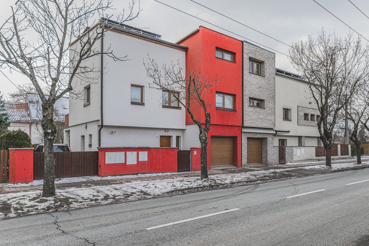 Kaunis uusi aurinkoinen huoneisto (43 m2), jossa on oma katettu pysäköintipaikka ja ilmastointi. Sijaitsee 5 minuutin kävelymatkan päässä Pardubicin keskustasta ja 7 minuutin kävelymatkan päässä juna- ja busasemalta. Täysin varustettu keittiö (paahtoleipä, kahvinkeitin, vedenkeitin, induktio, uuni, jääkaappi ja ruoanlaittovälineet). Huoneisto sopii 2 aikuiselle. Huoneessa on parivuode, TV, työpöytä ja suuri nojatuoli. Kylpyhuoneessa on suuri suihkualue ja pesukone. Terassilla on istuinalue. Odotamme teitä!