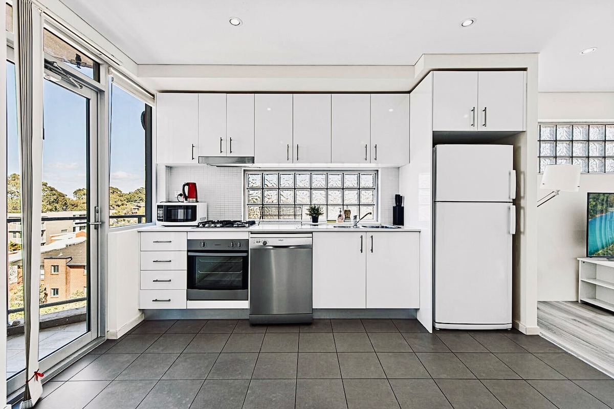 J korkealla sijaitseva kaunis näkymä, kätevä sijainti, 5 minuutin kävelymatka Westfieldin rautatieasemalle, ravintola, ilmainen pysäköinti