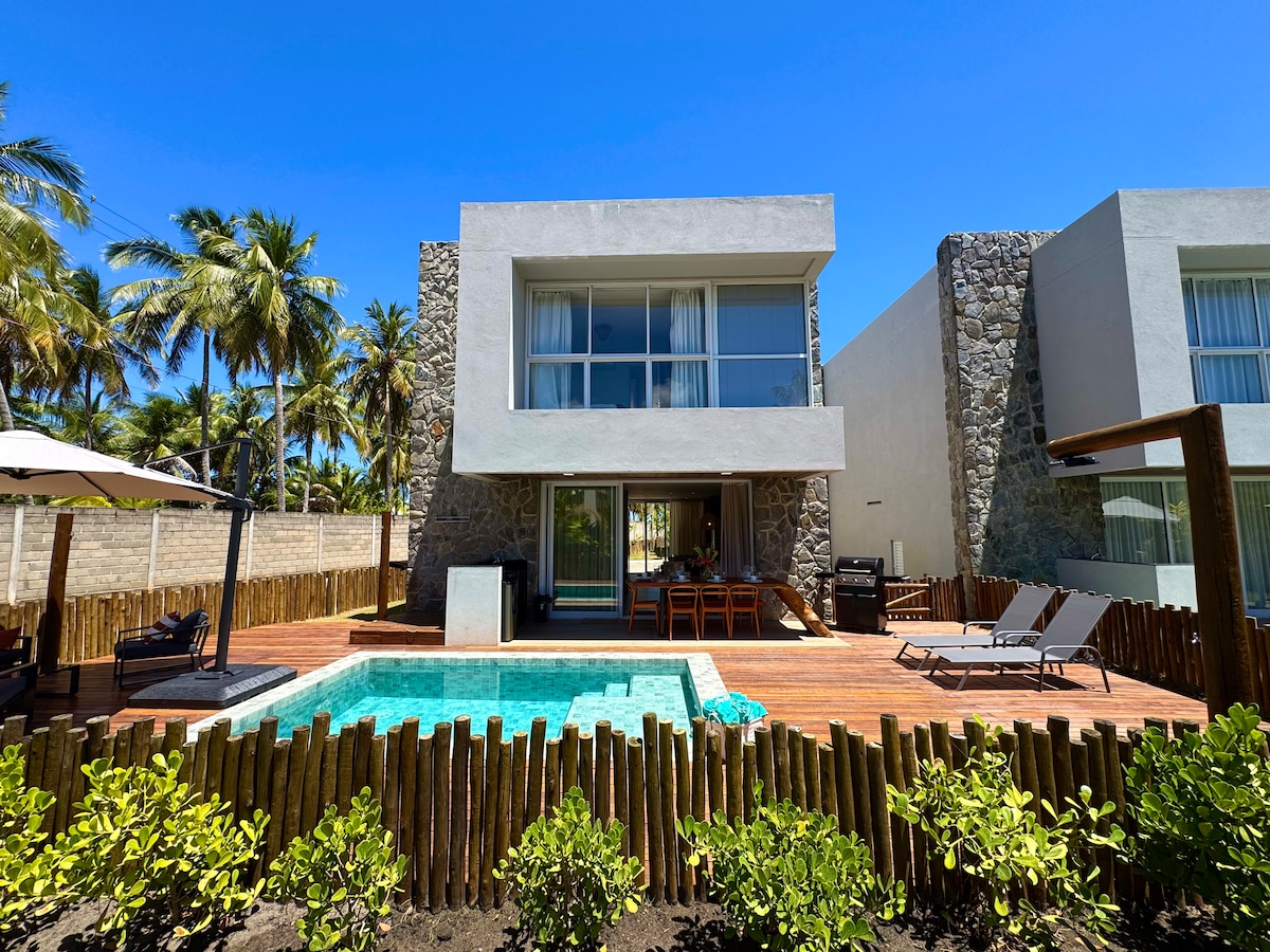 Casa Koral Milagres - Uusi rantatalo, jossa on 3 makuuhuonetta suljetussa osakehuoneistossa. Näkymä eturivin rannalle ja suora pääsy Praia Marceneiroon. Yksityinen uima-allas ja puutarha. Talo sijaitsee São Miguel dos Milagresissa. Talo on merelle päin, ja sieltä on esteetön näköala/pääsy rannalle. Olohuoneesta voit kävellä takapihalle, jossa on uima-allas ja hiekka ja meri edessäsi - 3 makuuhuonetta ja 3 kylpyhuonetta (2 on yhteydessä) - Queen-vuode jokaisessa makuuhuoneessa ja 4 ulosvedettävää vuodetta = vuoteet 10 hengelle
