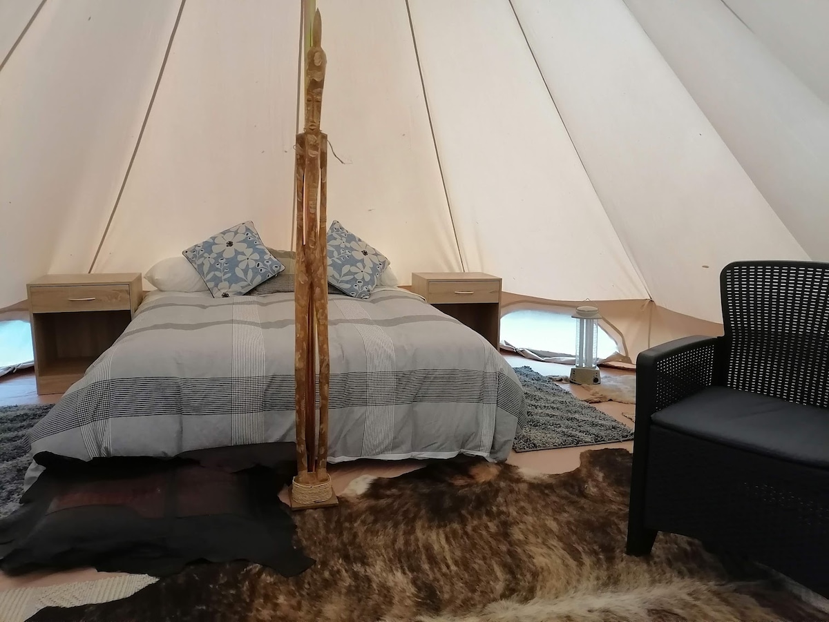 Aventura de lujo en plena naturaleza. Disfruta una experiencia única donde la emoción del glamping se combina con el confort de una suite. Descansa en una cama premium, despierta con el sonido del campo y vive la noche iluminada bajo un cielo abierto. Explora la biopiscina natural, respira aire puro y aventúrate sin renunciar a la comodidad. Cuenta con baño exterior exclusivo para el glamping con agua caliente. Habilitado para 2 personas y ampliable a 2 más, valor $8.000 por persona adicional.