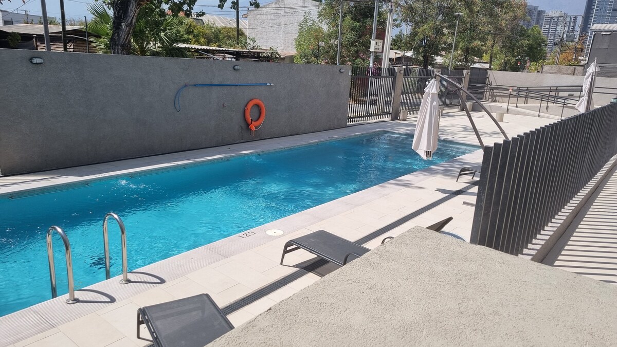 Tervetuloa kohteeseeni Santiagossa! Nauti modernista ja kodikkaasta huoneistostani, joka sijaitsee Ñuñoassa, kävelymatkan päässä sen aukiolta, teatterilta ja parhailta ravintoloilta. ✅ Suurempi makuuhuone sviitissä, jossa on 2 hengen vuode. Nopea ✅ wifi ja älytelevisio viihdettä varten. ✅ Täysin varustettu keittiö, jossa on kaikki tarvittava. ✅ Uima-allas, josta on upeat näkymät. ✅ Yksityinen pysäköinti ja vartiointi 24/7. ✅ Rautatieasema 1 korttelin päässä Täydellinen niille, jotka etsivät mukavuutta ja yhteyksiä Santiagossa. 🚇