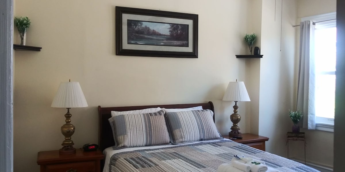 Täysin kunnostettu keskikaupungin kohde, jossa on 2 makuuhuonetta + 2 kylpyhuonetta. Tämä Trinity on yksi Phillyn rekisteröidyistä historiallisista kohteista, ja se tarjoaa uusia laitteita, kirkkaan sisustuksen ja kaikki mukavuudet, jotka tekevät majoittumisestasi miellyttävän. Bonus ulkotila, jossa on 2. kerroksen kattoterassi! Jokaisessa makuuhuoneessa on parivuoteet, ja 3. vuode on täysikokoinen taitettava patja olohuoneeseen. Paras sijainti kaupungissa kaikille Phillyn nähtävyyksille. Se on mahtava kohde matkustaville liikekumppaneille, perheille ja ystäville