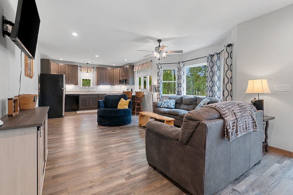 Tervetuloa Huntsvilleen! 🌲🏡 Pakene tähän maalaistyyliseen hirsimökkiin, jossa seikkailu kohtaa rentoutumisen! Voit meloa koko päivän kajakeillamme, kalastaa yksityiseltä laiturilta tai vain nauttia rauhallisista ranta-alueiden maisemista. Tämä viihtyisä lomakohde on täydellinen paikka rentoutua, olitpa sitten siemaillen kahvia auringonnousun aikaan tai katsomassa tähtiä nuotion ääressä. 🌊 Vain lyhyen kävelymatkan päässä Geano's Boat Launchista ja vain 22 minuutin päässä Lambeau Fieldistä – täydellinen paikka ulkoilun ystäville ja jalkapallofaneille! 🏈🚤 Seuraa @stayathuntsville Instagramissa
