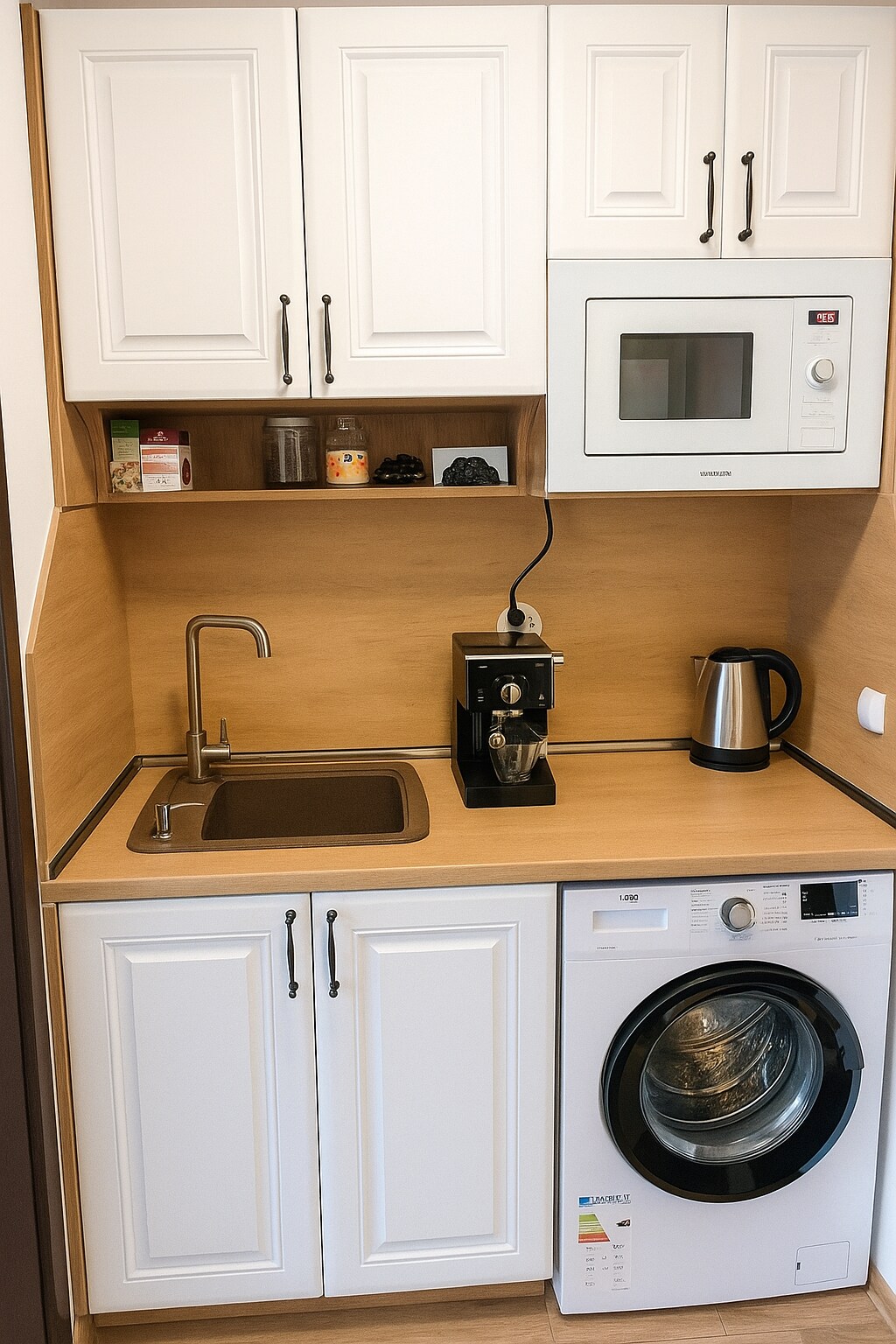 Добре дошли в уютния ни апартамент във Възраждане, Варна! Кухнята е напълно оборудвана с хладилник, печка,мивка,ширм,кафемашина,прибори. Дневната и кухнята са в едно помещение с разгъваем диван,маса,телевизор и уайфай. Спалнята е напълно реновирана.Разполага с голямо легло,гардероб и телевизор. Апартаментът е на приземен етаж с щори.Има пералня, ютия и дъска за гладене.Банята е с душ,тоалетна и мивка. В дневната има климатик. Насладете се на уютна почивка при нас, очакваме ви!