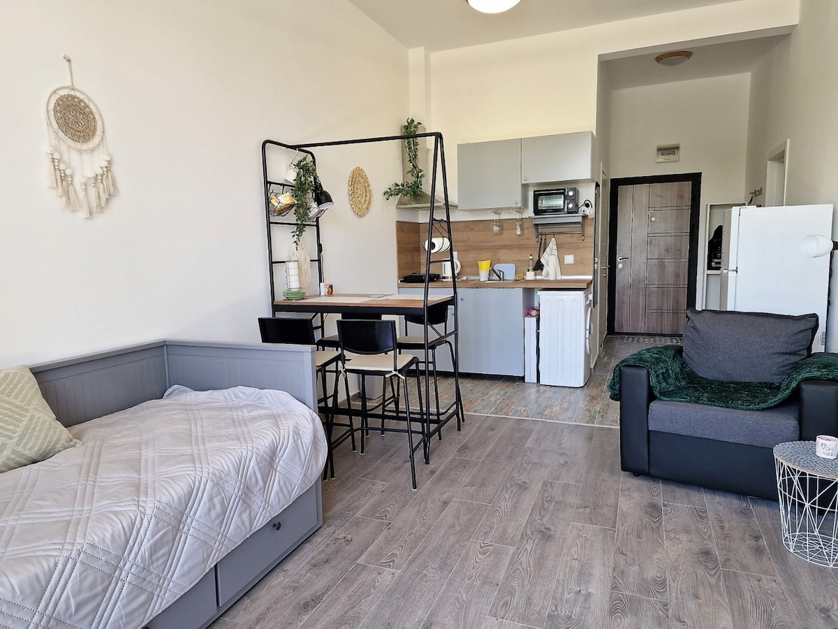 Toivotamme sinut tervetulleeksi ainutlaatuiseen majapaikkaamme Chartreuse-kompleksissa. Tarjoamme sinulle kaiken, mitä tarvitset nauttiaksesi erinomaisesta majoittumisesta. Studio on täysin varusteltu ja modernisti kalustettu. Vieraidemme käytettävissä on ulkouima-allas, lasten leikkipaikka, grillausmahdollisuus ja ilmainen pysäköinti. Vain muutaman minuutin ajomatkan päässä Shkorpilovtsin keskusrannalta. Sinulla on mahdollisuus viettää hiljaista ja rauhallista lomaa kaukana kaupungin melusta ja dynamiikasta.