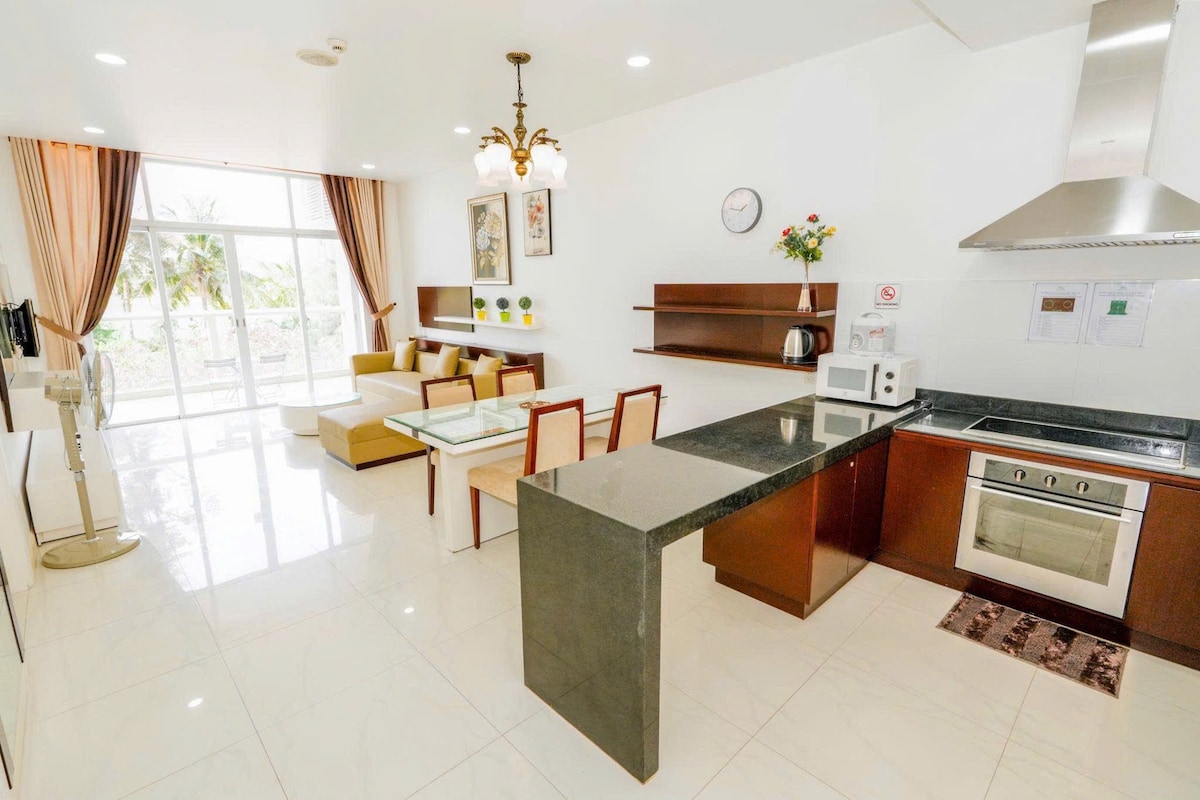Tämä huoneisto tarjoaa tasapainon mukavuuden ja modernin sisustuksen välillä, ja siellä on tarpeeksi tilaa erilliselle olohuoneelle, ruokailutilalle ja työpöydälle sekä täysin varustellut poikkeukselliset mukavuudet. Tästä huoneiston parvekkeelta on näkymät Mui Ne -lahdelle, ja voit nauttia viileästä tuulesta mereltä.