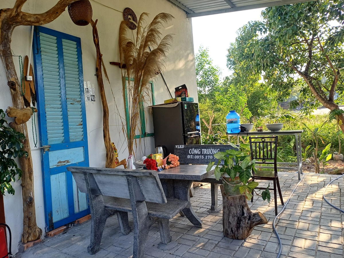 Tuo koko perhe tähän upeaan paikkaan, jossa on paljon leikkitilaa. Sijaitsee Duong Dong Wardin keskustassa, aivan kalastajakylässä, joten vierailijat voivat seurustella luontokylpyjen kanssa, kalastaa ja katsella kalastajien kalastusta koriveneellä. Keskeisen sijainnin pitäisi siirtyä kaikkiin erittäin käteviin nähtävyyksiin, kuten Vinperlandin matkailualueelle, Hon Thom -köysiradalle, Phu Quoc pagodille, 4 saarelle, yömarkkinoille, Dinh Caulle tai purolle. The homestay is near the supermarket, eateries and has assistance finding a car for guests to move.