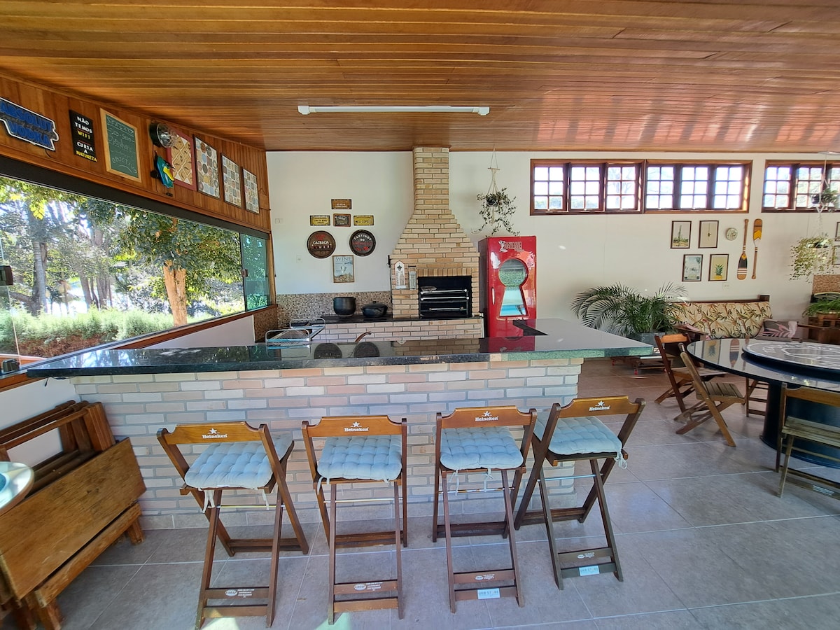 ✅️Pague sua viagem em até 6 x SEM juros Casa de Campo ILUMINADA, arejada e confortável COND.FECHADO c/ vigilância 24h 5 QUARTOS, sendo 1 suíte c/ hidro 5 BANHEIROS + lavabo Área c/ CHURRASQUEIRA, forno pizza, fogão a lenha e cervejeira Sala c/ LAREIRA Deixamos a FOGUEIRA montada PISCINA - 10m x 4m, sem aquecimento Gramado c/ GOLZINHO INTERNET fibra óptica(400MB) COMÉRCIO próximo Condomínio c/ MINIMERCADO 24h Cond. c/ TRILHA e LAGO ACESSO por estrada pavimentada PET friendly (casa cercada)