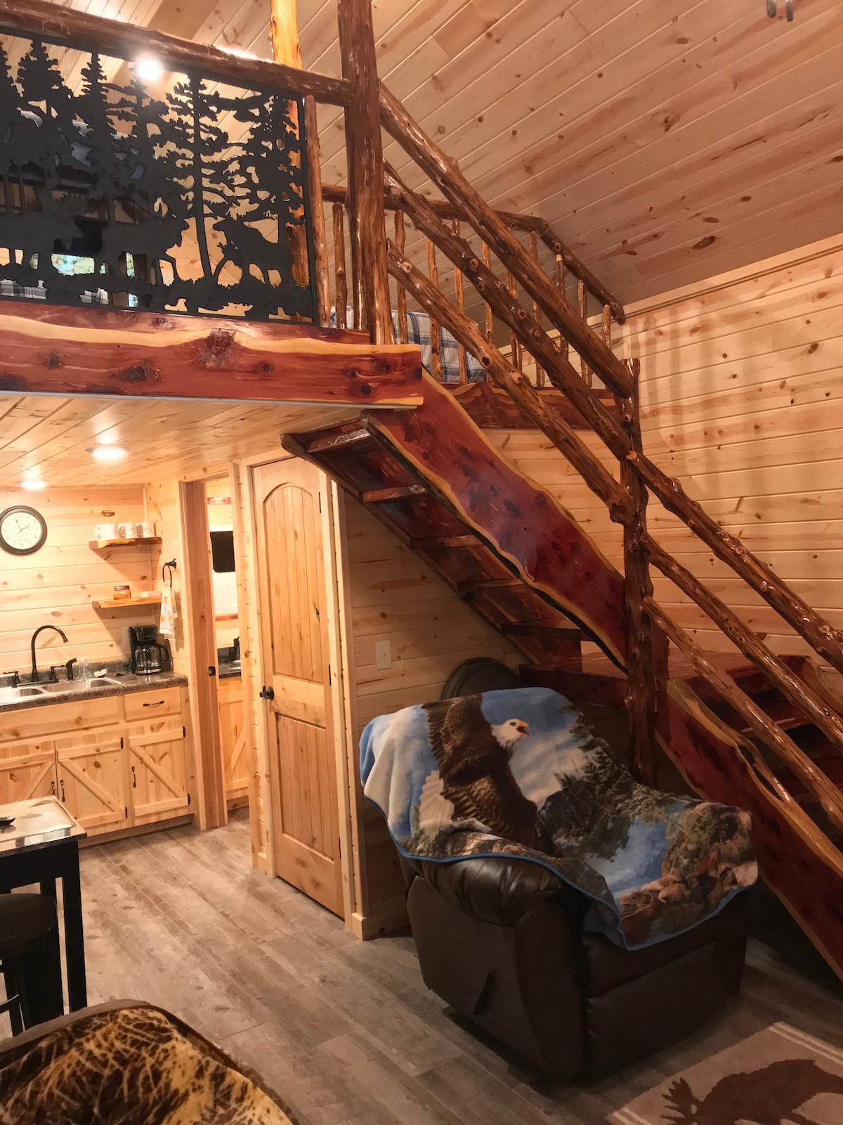 Mökki maalaistyylisellä sisustuksella Flint Hillsissä, Kansasissa, Rocking P -tilalla. Nauti elämästä preerillä: patikointi, kalastus lähellä lammessa ja leikkiminen purossa. Rentoudu kuistilla ja nauti näkymästä laajalle avoimelle alueelle. Grilli, takka ja luonto tekevät mistä tahansa vuodenajasta nautittavan. Ainoat vierailijat, joita sinulla saattaa olla, ovat naudat ja hevoset. Sijaitsee vain tunnin päässä Wichitan lentokentältä.