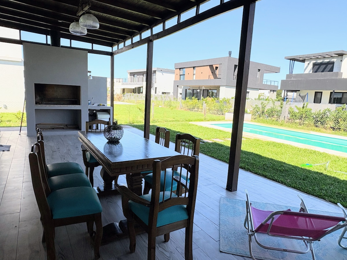 Casa con todas las comodidades para poder disfrutar en familia con pileta, parrilla, jardín y amplia galería. Amueblada con un concepto moderno y relajado, cuenta con tres habitaciones, una amplia suite principal, bañera excenta y ducha separada. Dos habitaciones con cama doble muy luminosas con un baño. Cocina bien equipada con isla , mesa de comedor , living y hogar y un toilette para visitas.