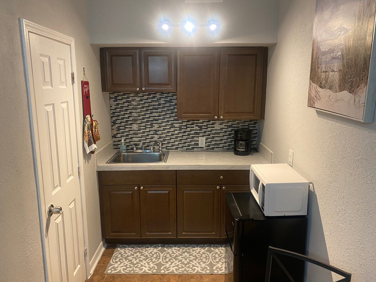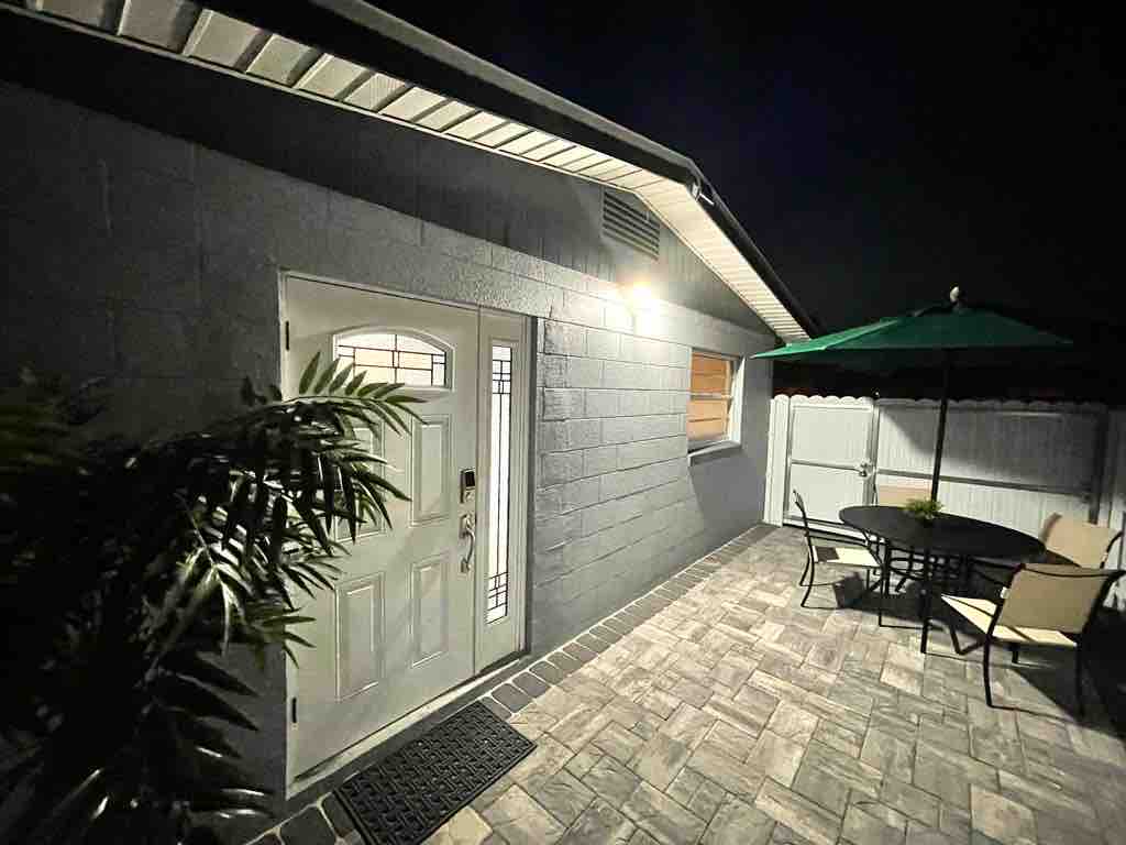 Tervetuloa Orlandoon! Tämä tila sopii täydellisesti sinulle. Sinulla on oma kylpyhuone, minikeittiö, ilmastointi, patio ja yksityinen sisäänkäynti. Tupakointi ei ole sallittua sisätiloissa, mutta sinulla on tupakointialue. Mukava ja yksityinen yksiö; tunnet olosi kodikkaaksi. Saapumisaika on joustava, uloskirjautuminen on klo 10.00, jos lähdet klo 10.05 tai tarvitset lisäaikaa, veloitetaan 10 dollaria tunnilta