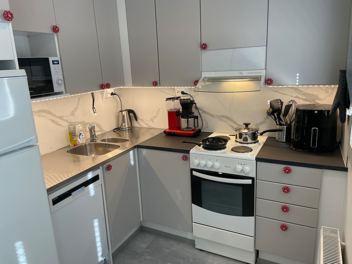 Näppärän kokoisessa pikkuasunnossa on kaikki tarpeellinen. Voit nukkua hyvät yöunet laadukkaassa 120cm leveässä memory-foam sängyssä. Valittavana kaksi eri tyynyä. Kahta matkaajaa varten on vuodesohva jonka voi myös levittää. Siitä tulee tällöin 140cm vuode johon sopii myös nukkumaan 2 henkilöä. Asunnon ulkopuolella pieni viihtyisä terassi-patio jossa voit säiden salliessa paistatella auringossa tai tarpeen tullen avata varjon jolloin on mukavaa istua myös auringon paahtaessa.