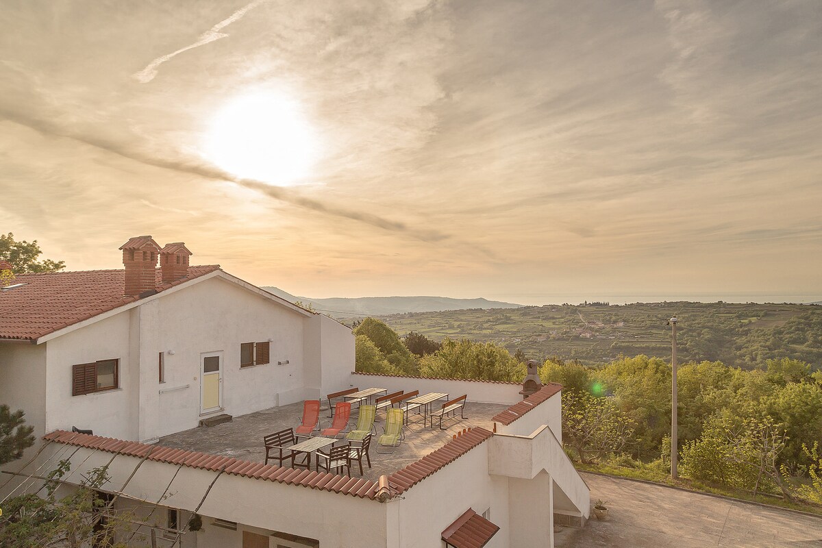 Uusi moderni, täysin varustettu huoneisto (2018), jossa on ilmainen pysäköinti, suuri terassi ja puutarha upealla näkymällä, lähellä kaupungin keskustaa ja rantaa. Autollasi olet läheisillä rannoilla muutamassa minuutissa. Mukava alue, jos pidät lenkkeilystä, pyöräretkistä... Vuokraamme polkupyöriä. Ihanteellinen perheille, pariskunnille ja liikematkailijoille, jotka etsivät ainutlaatuista ja rauhallista lomaa. Tarjoamme aamiaisen ja muita juuri valmistettuja aterioita. Tervetuloa! Varaa myös ISTRIAN RIVIERA: https://www.airbnb.com/rooms/20225110