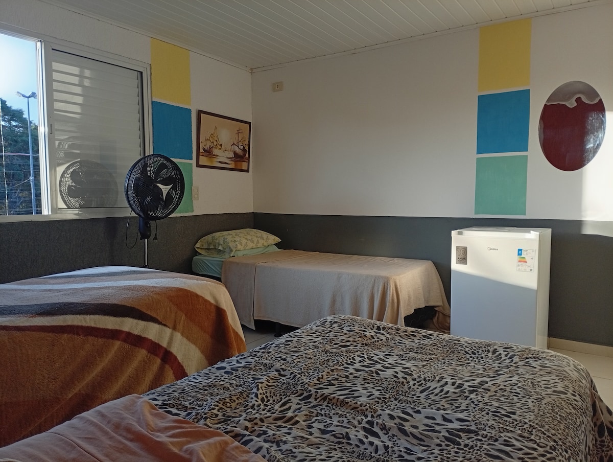 Acomodação modesta e acolhedora, localizada nos fundos do terreno, com entrada independente e separada por uma cerca, não tem garagem. É o espaço ideal para quem busca uma estadia tranquila, prática e com privacidade. Distância Expotrade convention center 1.100 km ( 2 minutos) Parque das Águas 4.500 km (6 minutos) Bosque Municipal 5.600 km (10 minutos) Shopping Jockey Plaza 8 km (15 minutos) Jardim Botânico 12 km (20 minutos) Centro de Curitiba 13 km ( 25 minutos)