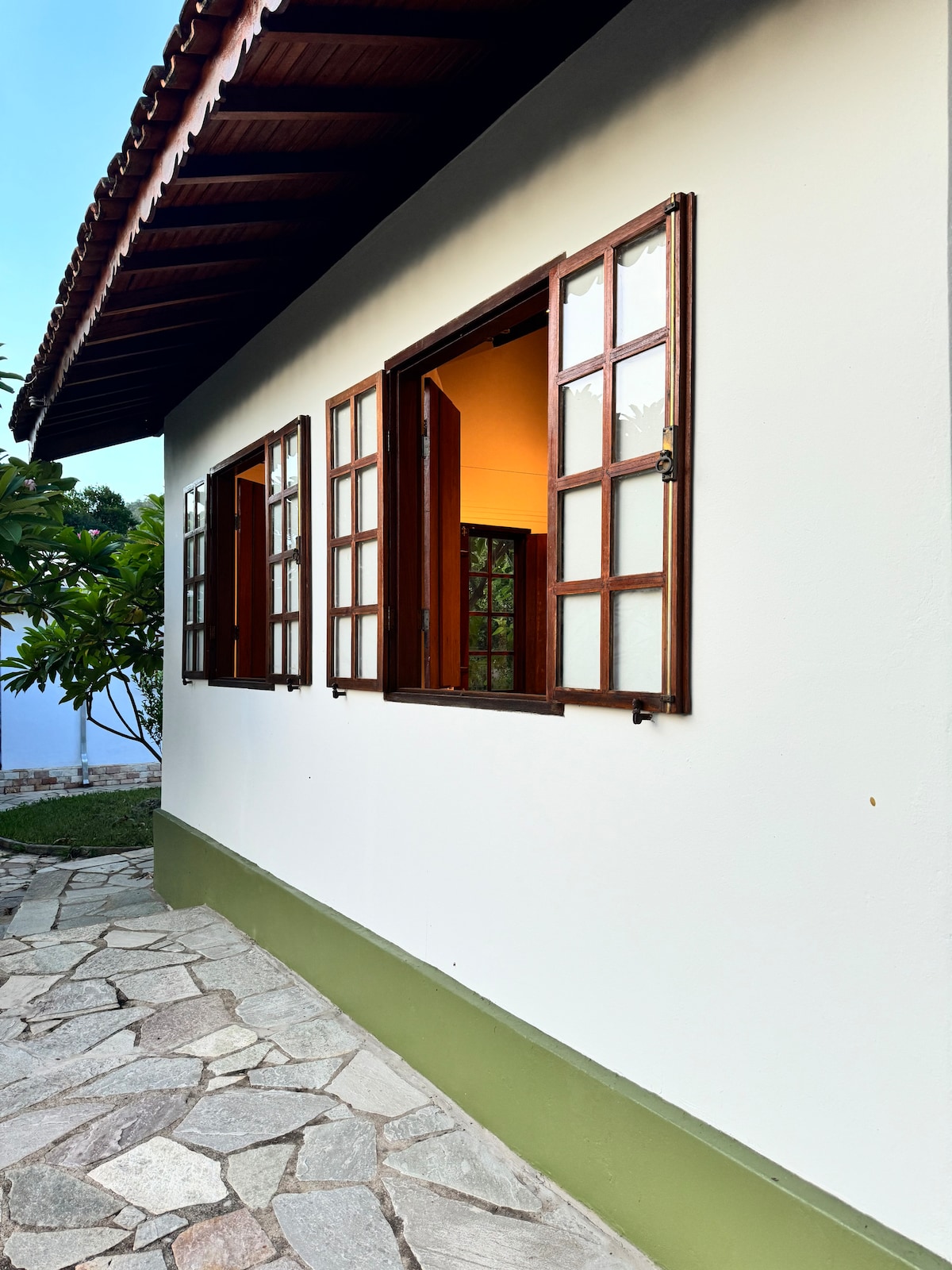 Tilava huoneisto erinomaisella paikalla, vain 300 m keskustasta, rauhallisalla ja turvallisella kadulla. Jätä autosi yksityiselle pysäköintialueelle ja kävele 10 minuuttia viehättävän Pirenópoliksen ravintoloiden, baarien ja nähtävyyksien keskelle. Tarjoamme mukavuutta ja yksityisyyttä, queen-vuoteen, yksityisen kylpyhuoneen ja kaiken, mitä tarvitset hyvään välipalaan tai aamiaiseen. Ilmavat huoneet, joissa on ikkunat ja parveke puutarhaan päin, takaavat rentouttavan majoittumisen. 150 metrin päässä on supermarketti ja apteekki.
