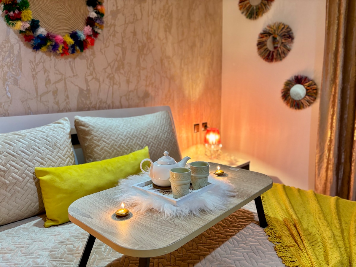 Tämä helmi, joka sijaitsee toisessa kerroksessa meren äärellä, on osa Mogador Beach Residenceä, jossa on uima-altaita, puutarhoja, pysäköinti ja ympärivuorokautinen vartiointi. Uusi, hiljainen huoneisto, jossa on poikkeuksellinen näkymä rannalle, merelle ja Essaouiran saarille. Kaunis keittiö, erinomaiset eristysikkunat, makuuhuone, kaksi kylpyhuonetta, suuri sohva, joka muuttuu toiseksi vuoteeksi. Se on ihanteellinen pariskunnille tai 3-4 hengen perheille. Nopea valokuitu-WIFI. Smart TV. Ei hissiä