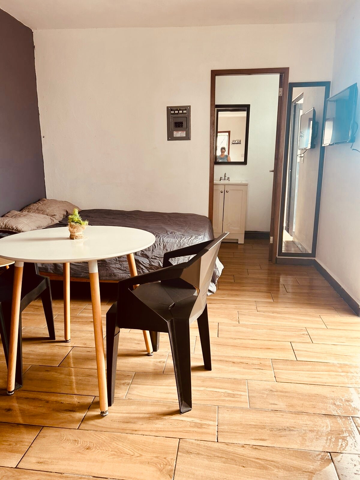 LOFT "A" Cómodo y equipado alojamiento chico tipo loft para una estancia agradable; CAMINANDO llegarás en 3 min. a la playa-malecón, a la vuelta esta el estadio de baseball de los venados, el central park, el nuevo acuario , enfrente esta la Gran Plaza y muy cerca está la zona dorada en donde encontrarás infinidad de restaurantes y antros para tu diversión. El lugar está en avenida hay mucho tránsito de vehículos y personas rumbo al malecón y playa. Perfecto para parejas y viajeros solitarios